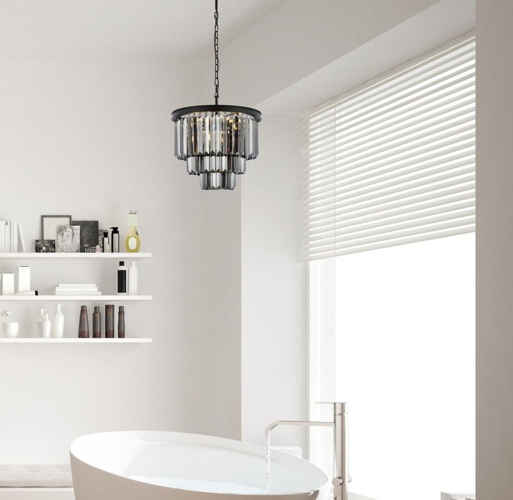 Bring the splendor of the ballroom into your home with a sparkling Sydney fixture. Stunning in foyers, dining rooms, or stairwells, the Sydney collection brings to mind the glamour of the Roaring Twenties. Features glimmering tiers of royal-cut clear, golden-teak, or Silver-shade crystals. In Matte Black or polished-nickel finishes, this sturdy, yet delicate, pendant lamp will be the perfect centerpiece for any décor.