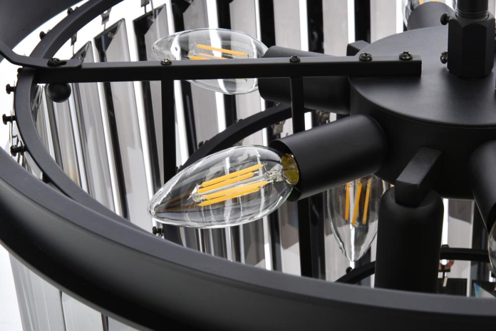 Lamp features a diameter of 20 inches, a height of 20.5 inches; requires 9 candelabra lights