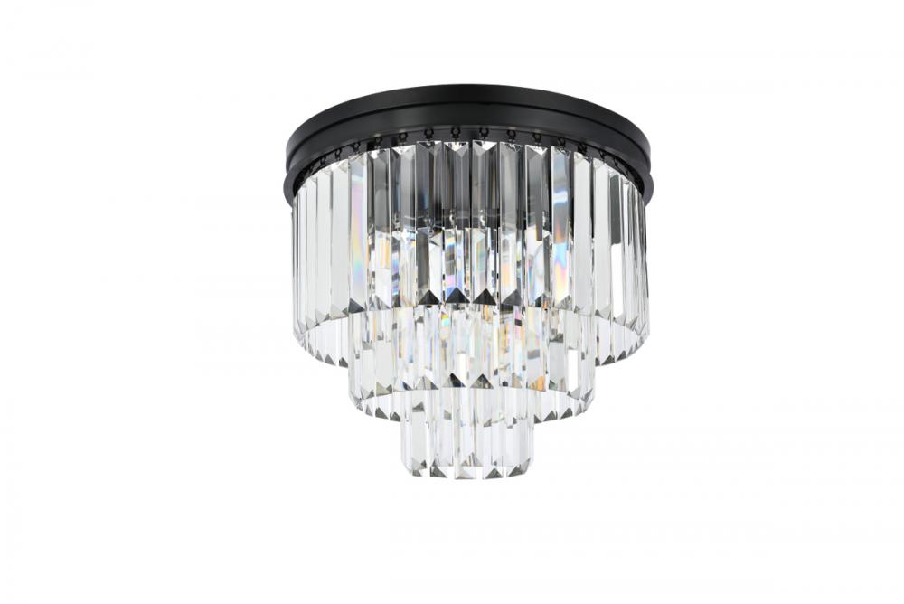 Timeless splendor and modern refinement are brought together in flush-mount Sydney fixtures. Dazzling in dining rooms, staircases, or hallways, the Sydney collection flaunts stunning tiers of royal-cut crystals in clear, golden teak, or Silver shade. A circular Matte Black or polished-nickel finished steel frame adds understated charm to this stunning flush-mount lamp.