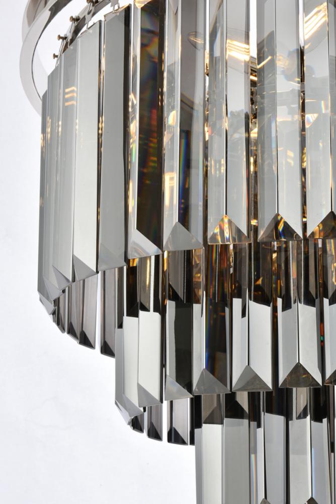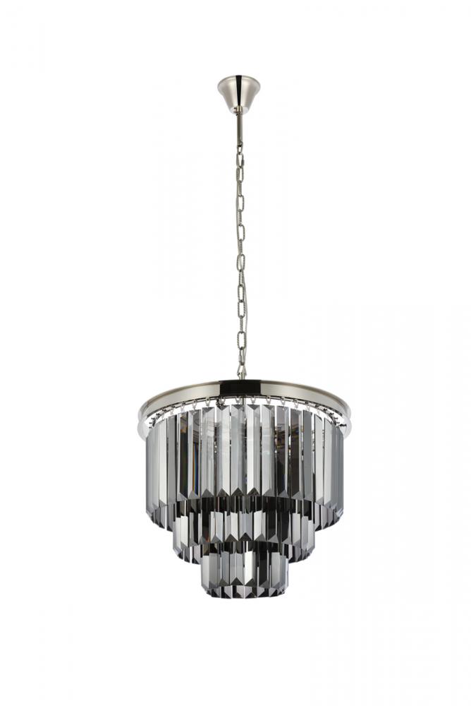 Bring the splendor of the ballroom into your home with a sparkling Sydney fixture. Stunning in foyers, dining rooms, or stairwells, the Sydney collection brings to mind the glamour of the Roaring Twenties. Features glimmering tiers of royal-cut clear, golden-teak, or Silver-shade crystals. In mocha-brown or polished-nickel finishes, this sturdy, yet delicate, pendant lamp will be the perfect centerpiece for any décor.