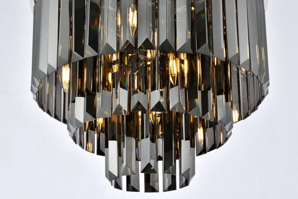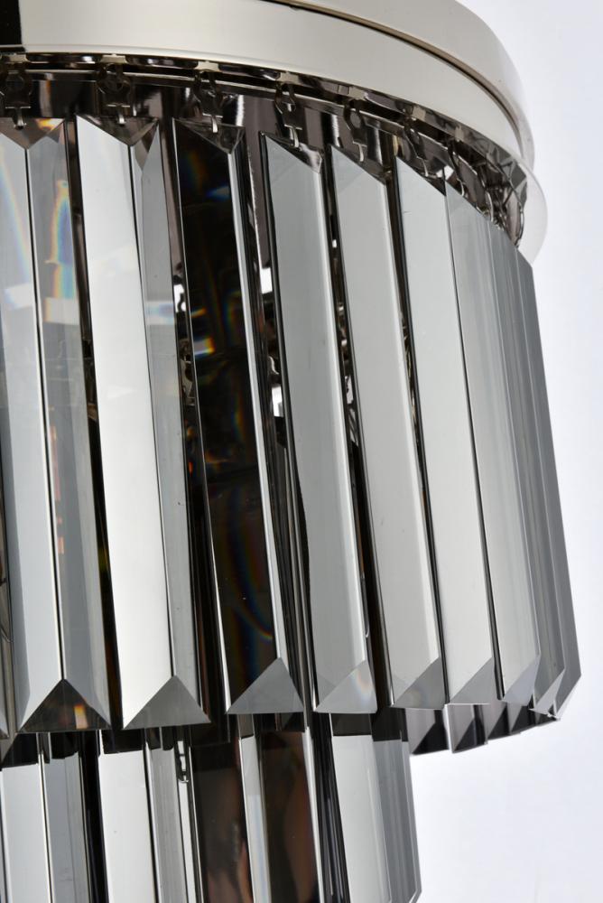 Timeless splendor and modern refinement are brought together in flush-mount Sydney fixtures. Dazzling in dining rooms, staircases, or hallways, the Sydney collection flaunts stunning tiers of royal-cut crystals in clear, golden teak, or Silver shade. A circular mocha-brown or polished-nickel finished steel frame adds understated charm to this stunning flush-mount lamp.