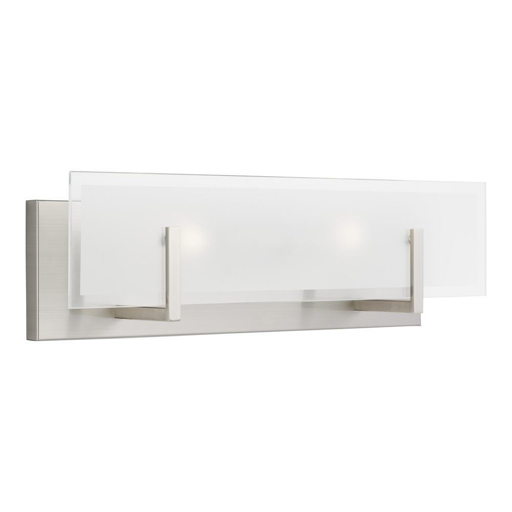 The Syll two light vanity fixture in brushed nickel provides abundant light for your bath vanity, while adding a layer of today's style to your interior design. Syll features a stylish frame with brilliant frosted beveled glass panels.
