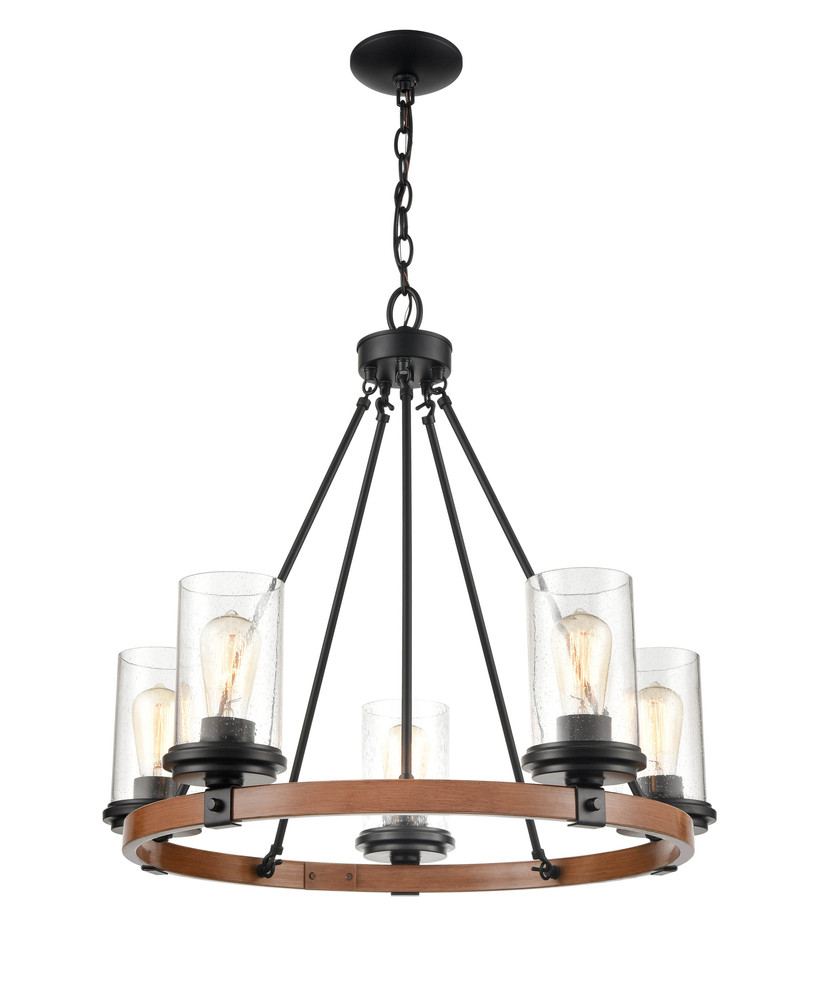 Taos 5-Light Chandelier Ceiling Light Matte Black/Wood Grain