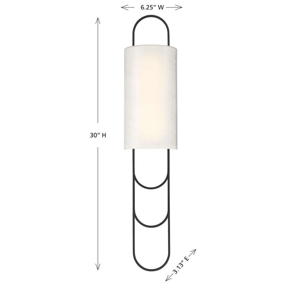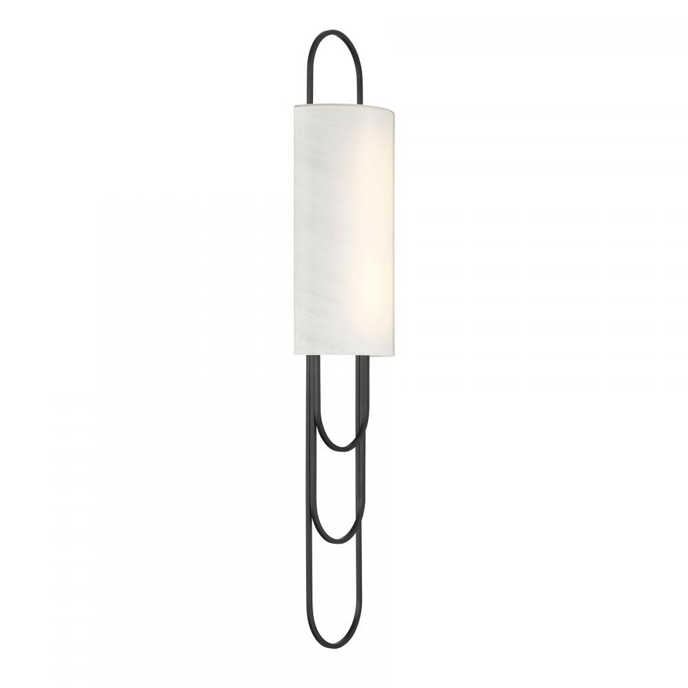 Sleek and elegant, the Savoy House Tartine sconce is a true lighting treat that is perfectly suited for any space! Its jewelry-like shape showcases a shade of stunning, swirling strie glass and is finished in timeless Matte Black. Tartine is 30" in height, 6.25" in width and extends 3.13" from the wall. Uses an integrated LED light source. This sconce is damp area rated.