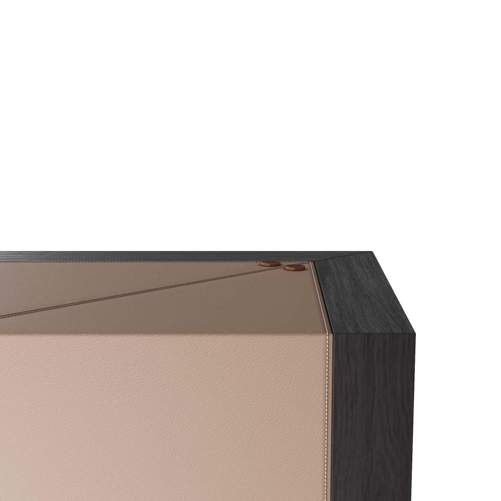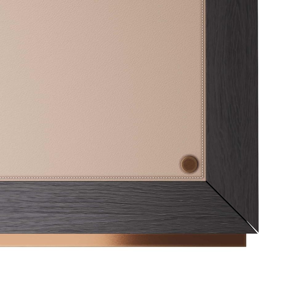 TAILORED AND BEAUTIFULLY CRAFTED, OUR TATIANA ACCENT TABLE FITS SEAMLESSLY INTO ANY LIVING SPACE. THE STYLISH TABLE IS CREATED IN NEUTRAL BONE LEATHER WITH A STITCHED TOP AND A WATERFALL EDGE THAT FORMS AN APRON, OFFERING CONTRAST AGAINST THE STRONG, WIRE-BRUSHED, EBONY OAK FRAME AND ANTIQUE BRASS FEET. THE HANDSOME TABLE IS EMBELLISHED WITH ANTIQUE BRASS BRADS AT EACH CONNECTION POINT. FINISH WILL VARY.