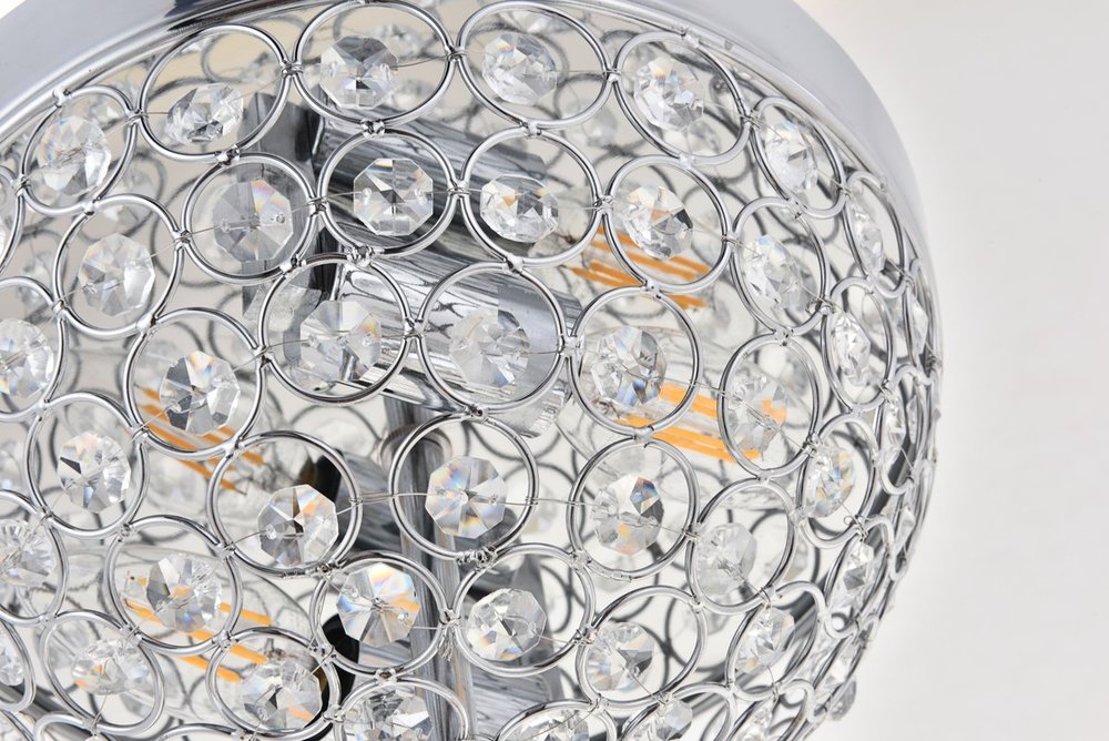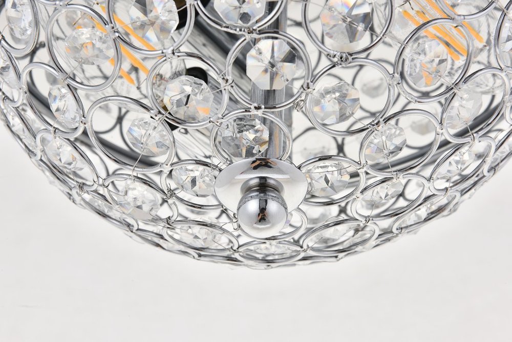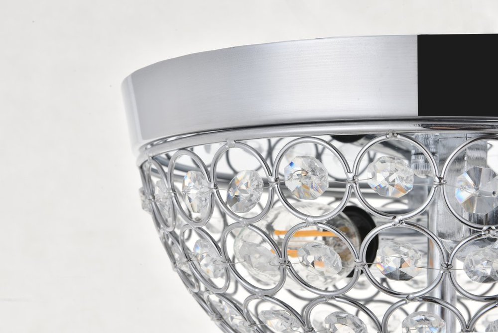 What could be better than a hemisphere of light and crystals? With the Taye collection flush mount in a chrome finish, crystals are beautifully aligned within the circular pattern of the frame--light shimmering through the sparkling objects, adding even more interest and intrigue. Whether it shines in the living room or powder room, the glamour itself will create a luxurious atmosphere.