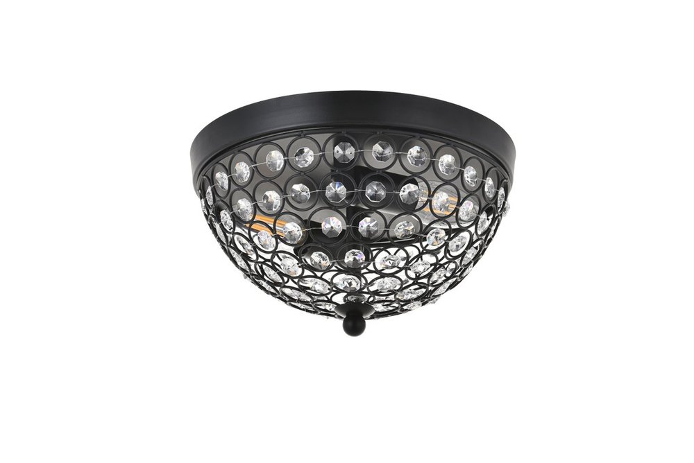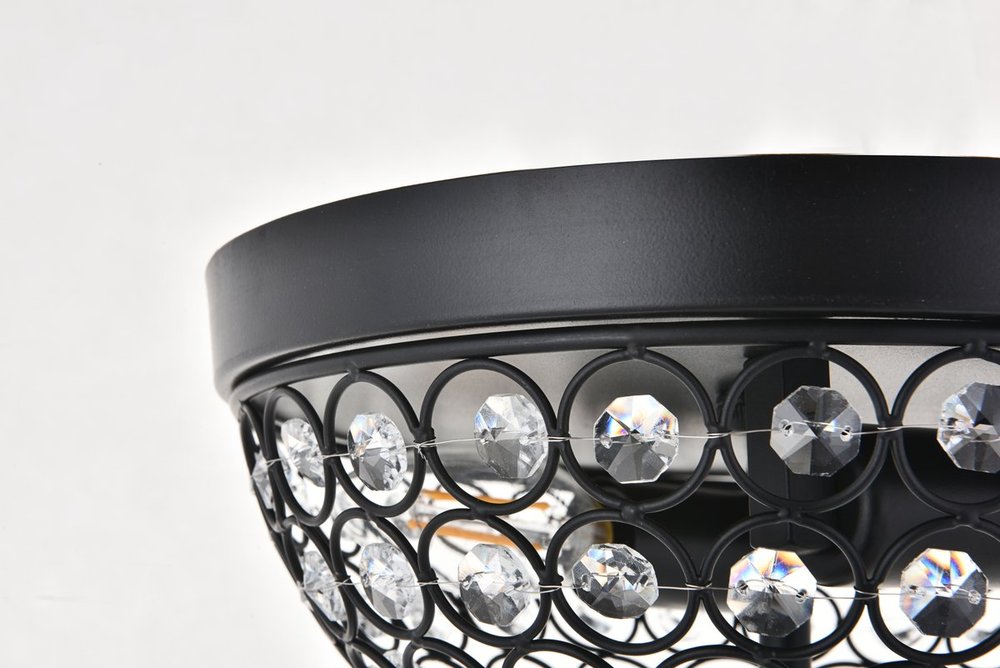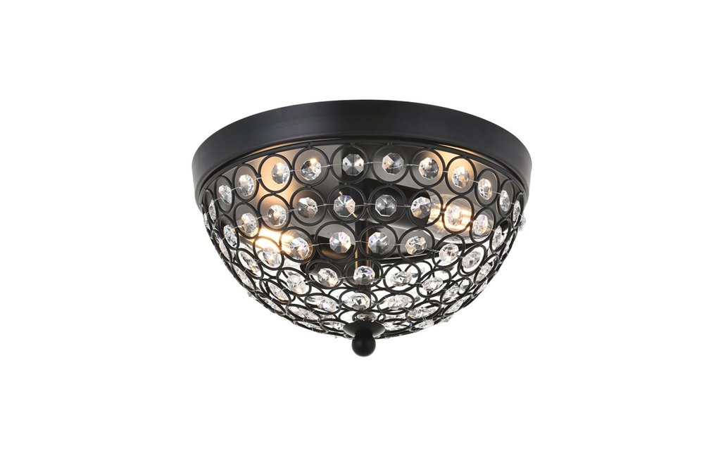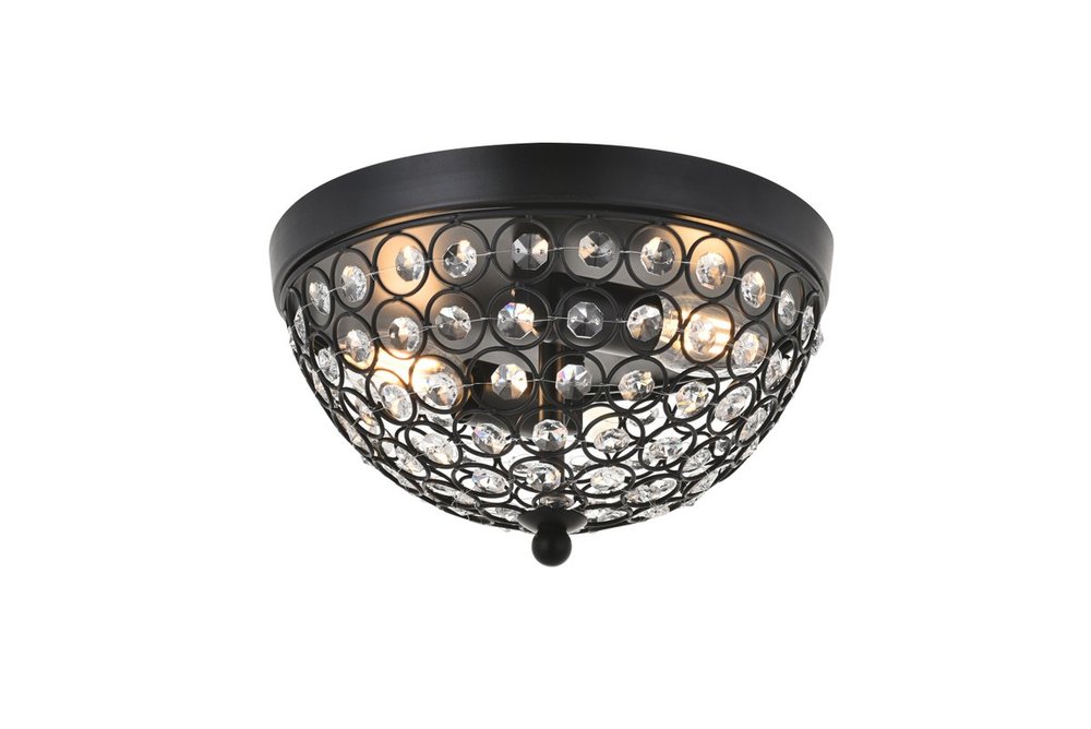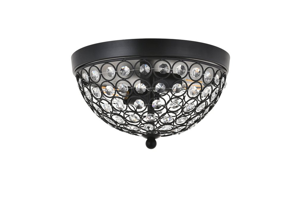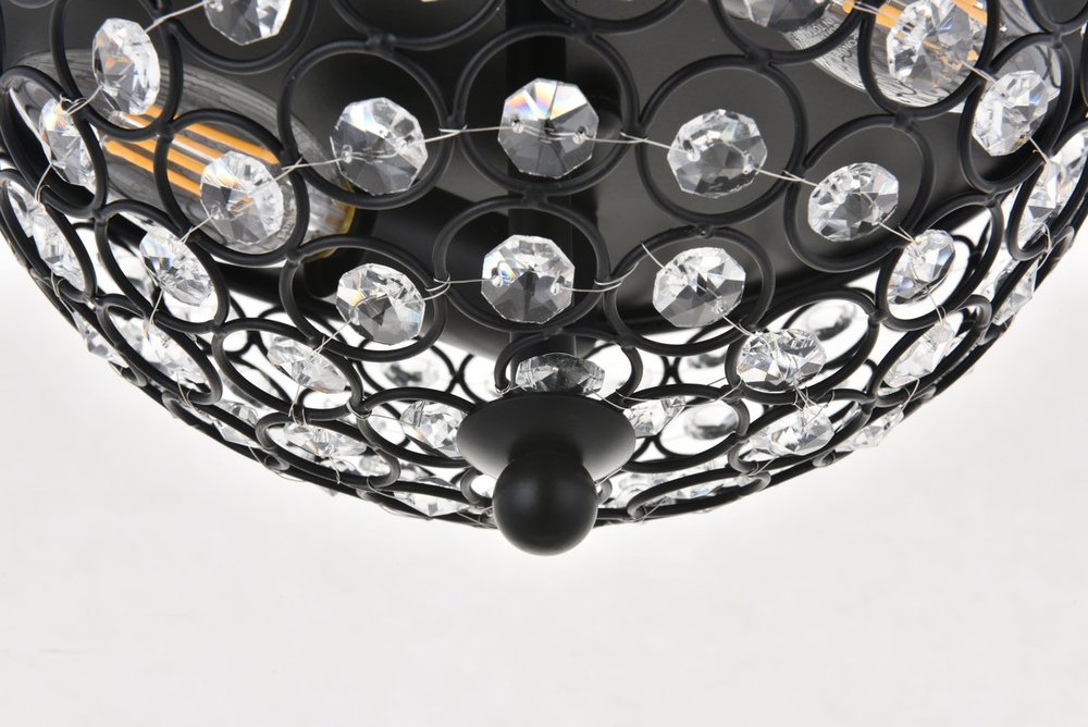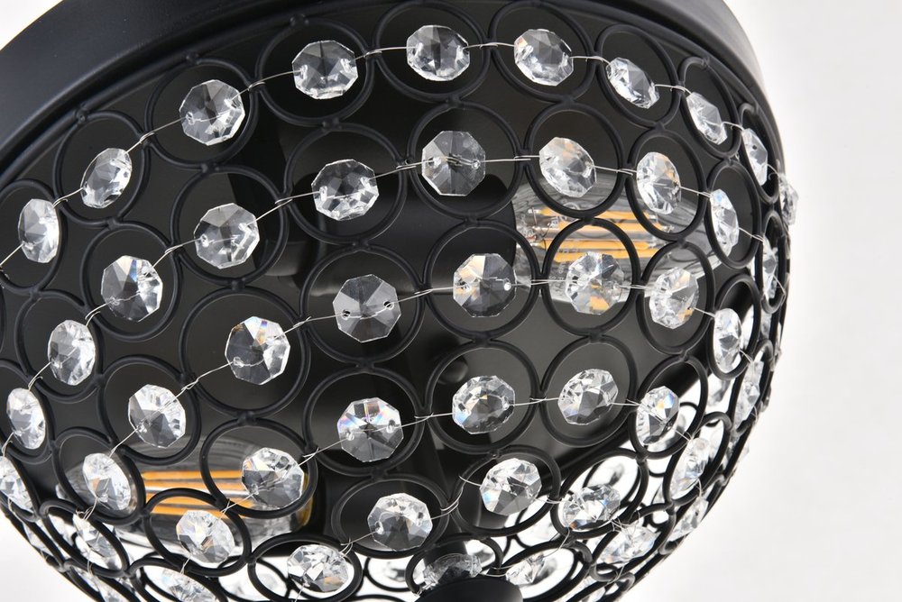 What could be better than a hemisphere of light and crystals? With the Taye collection flush mount in a Mattee black finish, crystals are beautifully aligned within the circular pattern of the frame--light shimmering through the sparkling objects, adding even more interest and intrigue. Whether it shines in the living room or powder room, the glamour itself will create a luxurious atmosphere.