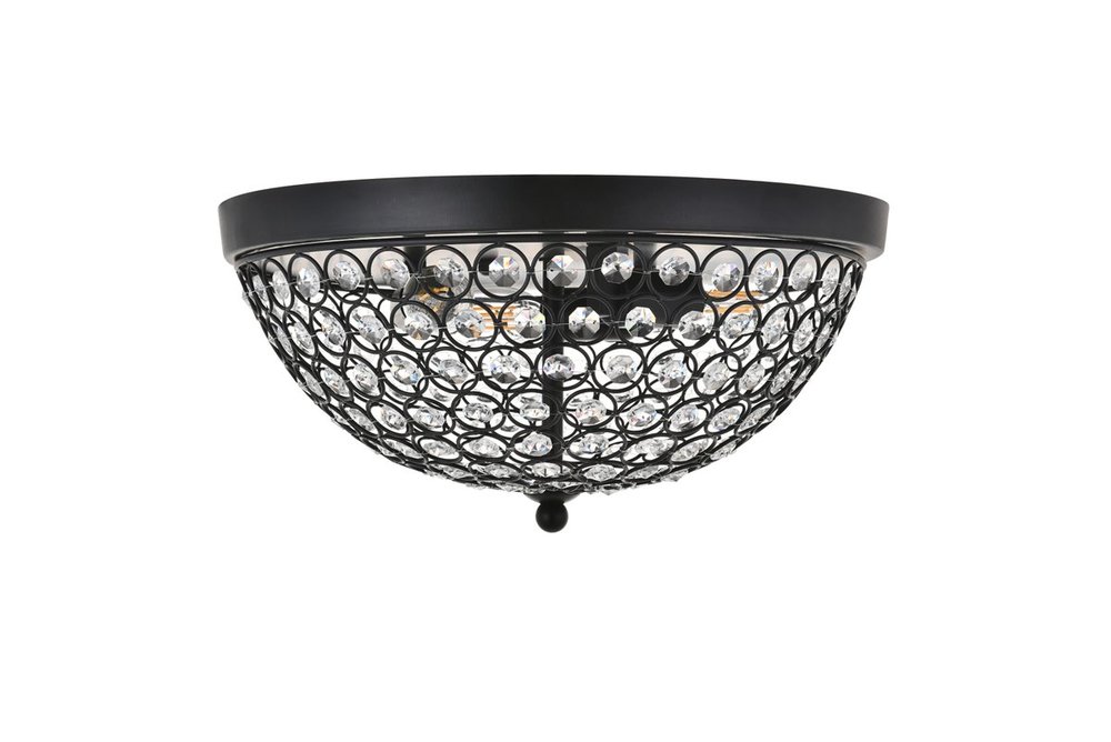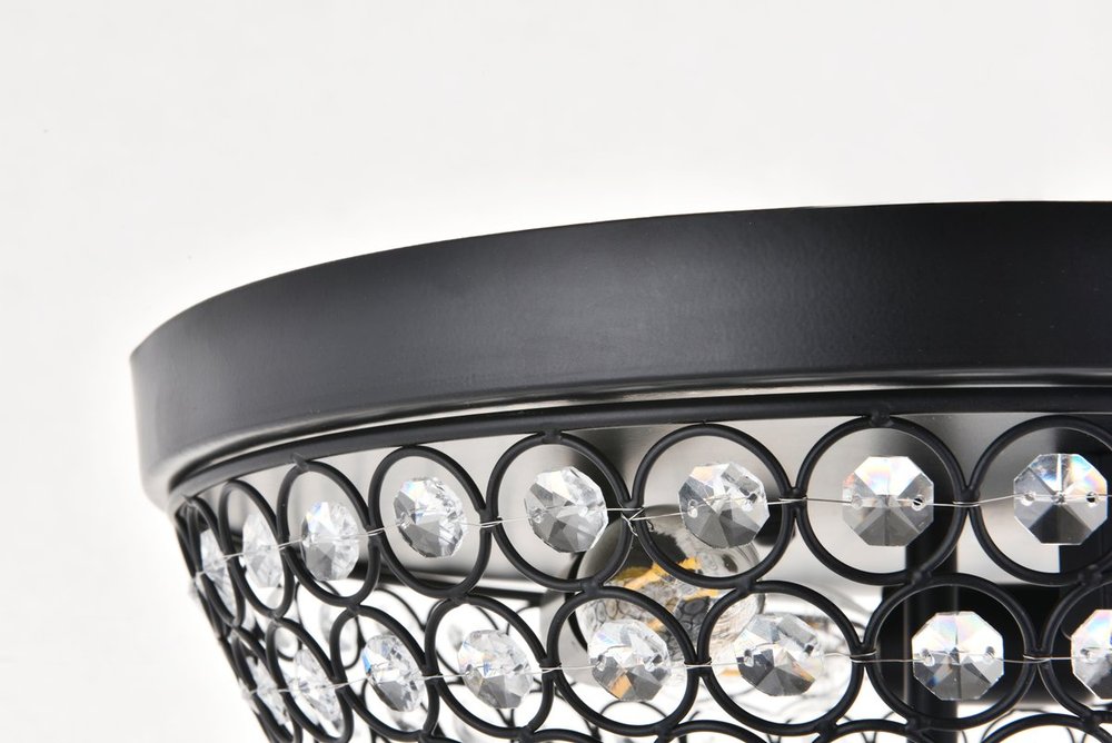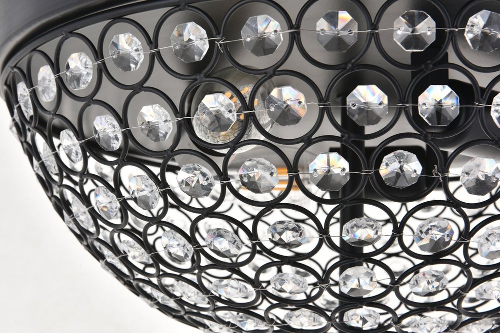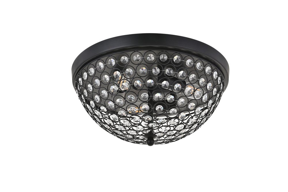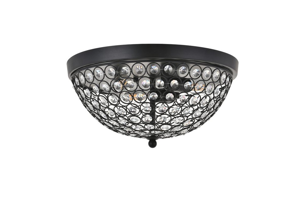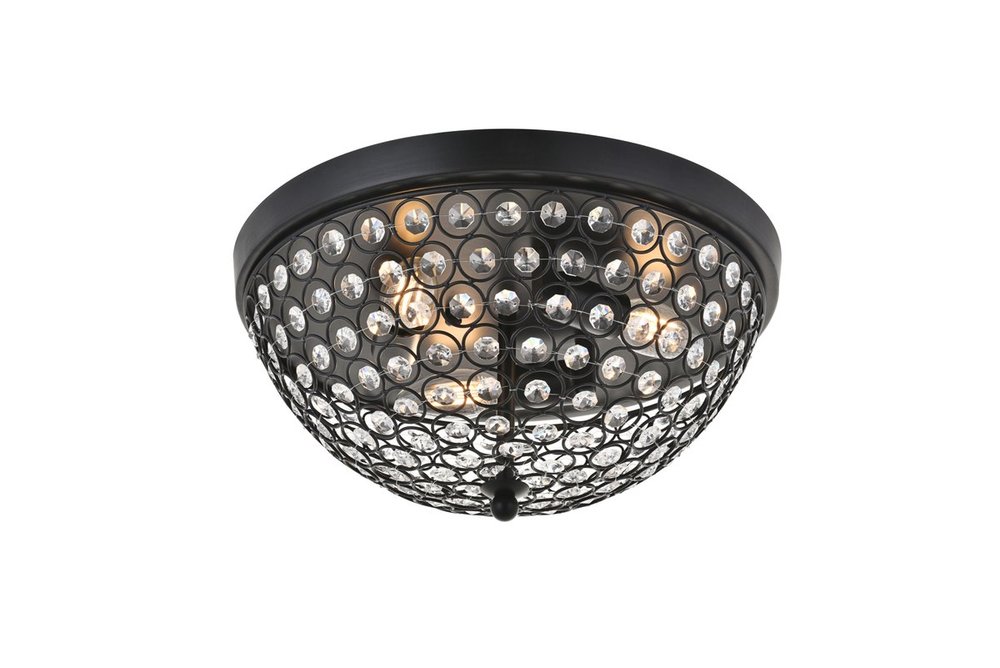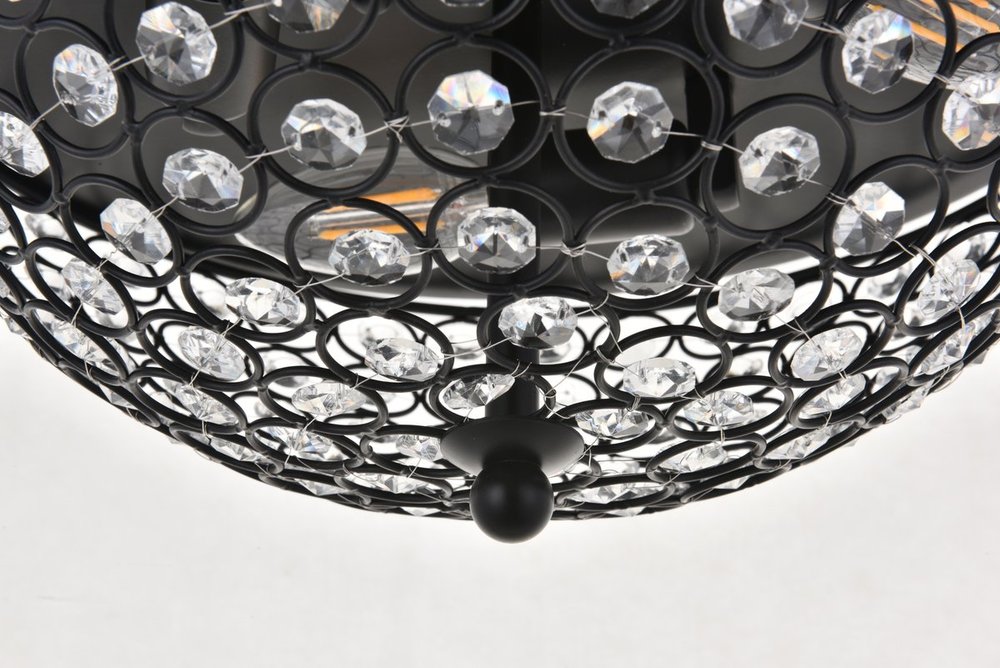 What could be better than a hemisphere of light and crystals? With the Taye collection flush mount in a Mattee black finish, crystals are beautifully aligned within the circular pattern of the frame--light shimmering through the sparkling objects, adding even more interest and intrigue. Whether it shines in the living room or powder room, the glamour itself will create a luxurious atmosphere.