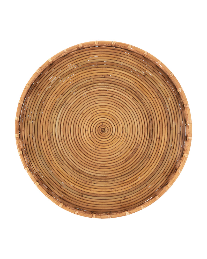 The Tegal Decorative Serving Tray is over 23 inches in diameter and has a glass inset, which makes it an ideal choice for using as a table-space on an oversized ottoman. Made of Arurog, a reed that is known for its pliability, the decorative tray is also perfect for serving, as the glass forms a protective shield on the bottom. The looping pattern on the sides forms natural handles so it’s easy to grip almost anywhere.