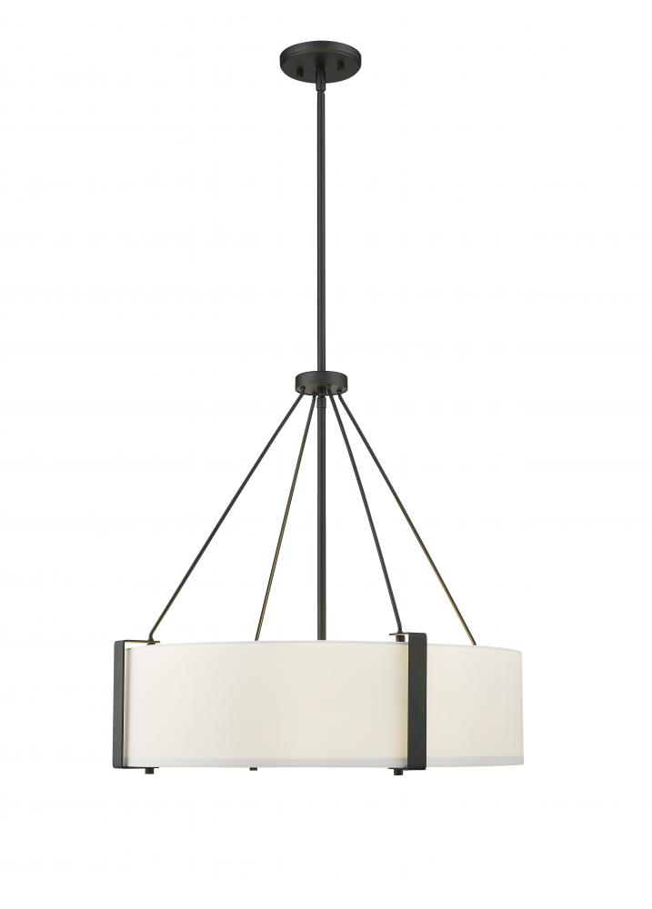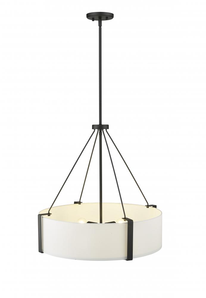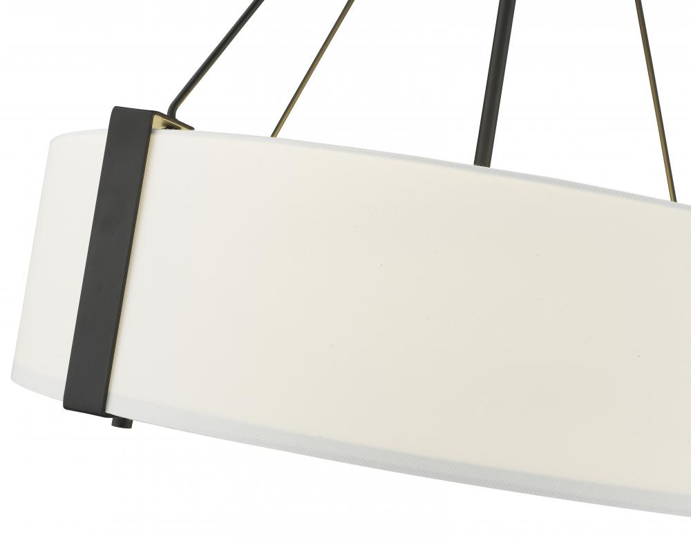 The Telfar Family of pendant lighting creates an elegant statement in any entryway, hall, or bedroom. The Art-Deco-inspired metal framework is finished in either modern gold or matte black and provides a bold and stylish structure for the white fabric shade and opaque white glass diffuser. These luxurious fixtures are available as 3- and 6-light options and are the perfect touch for any design scheme from vintage chic to transitional modern.