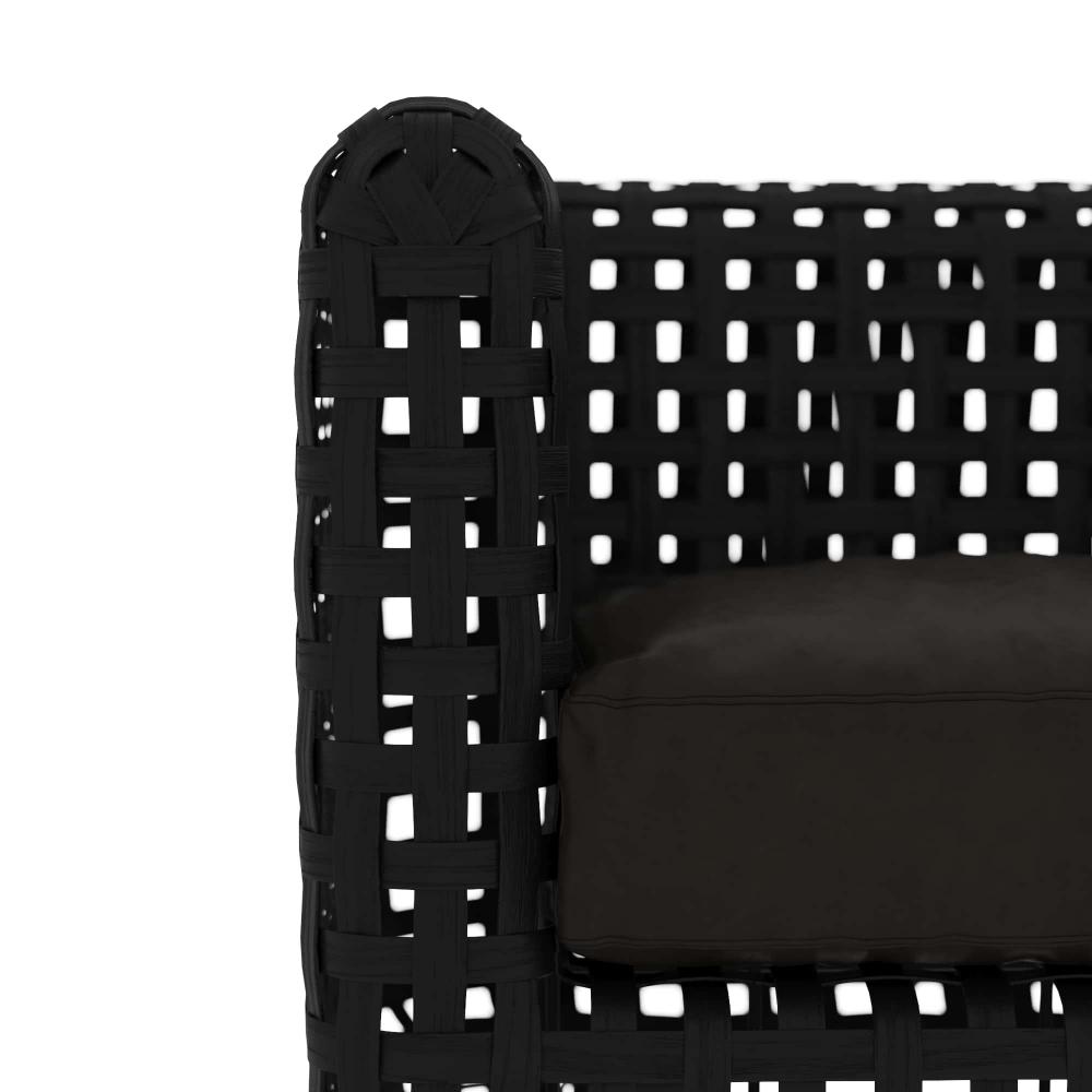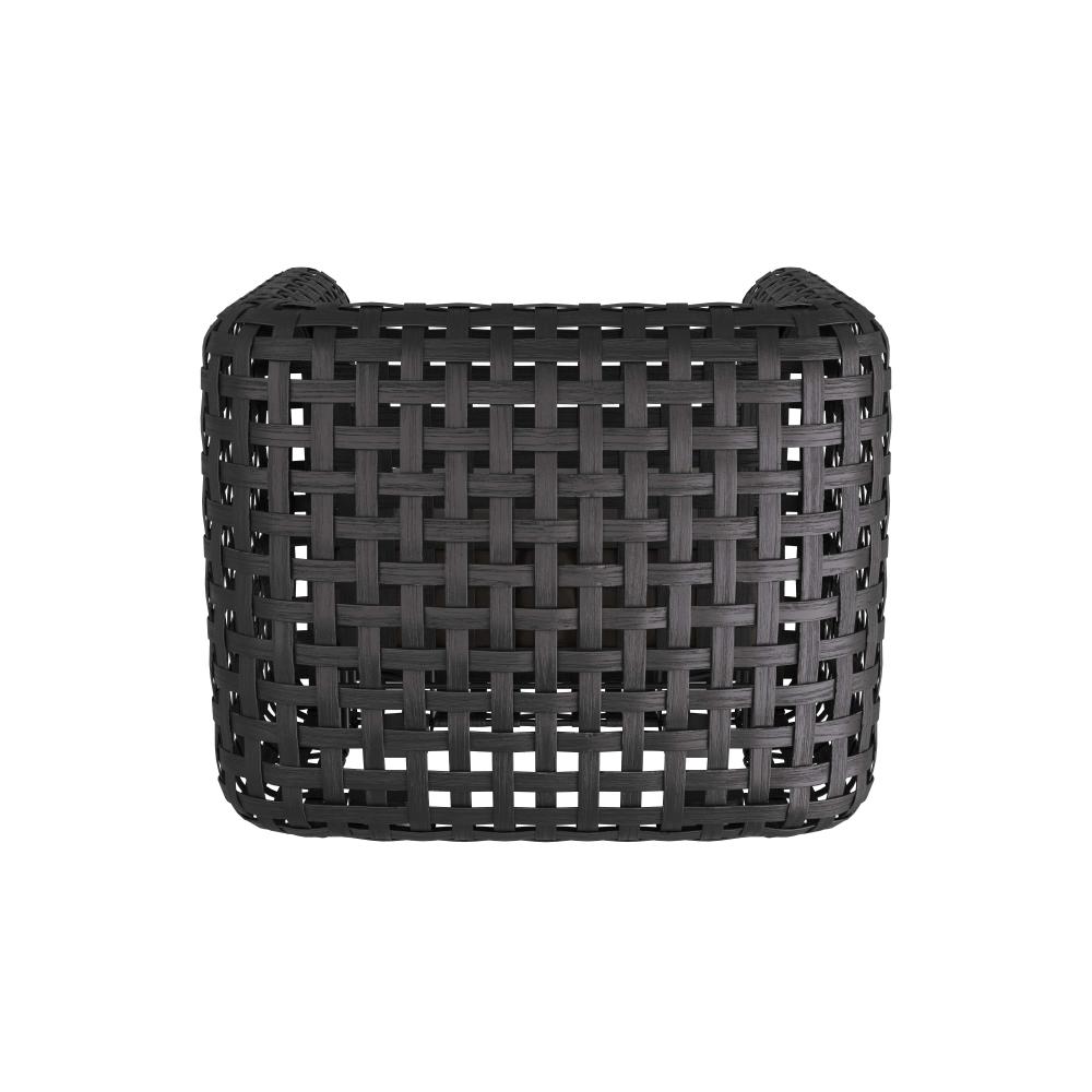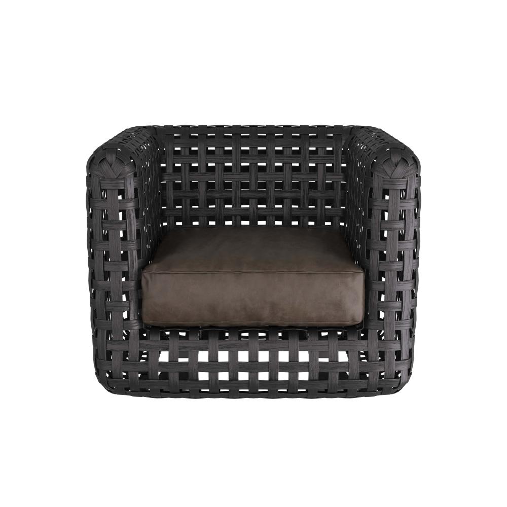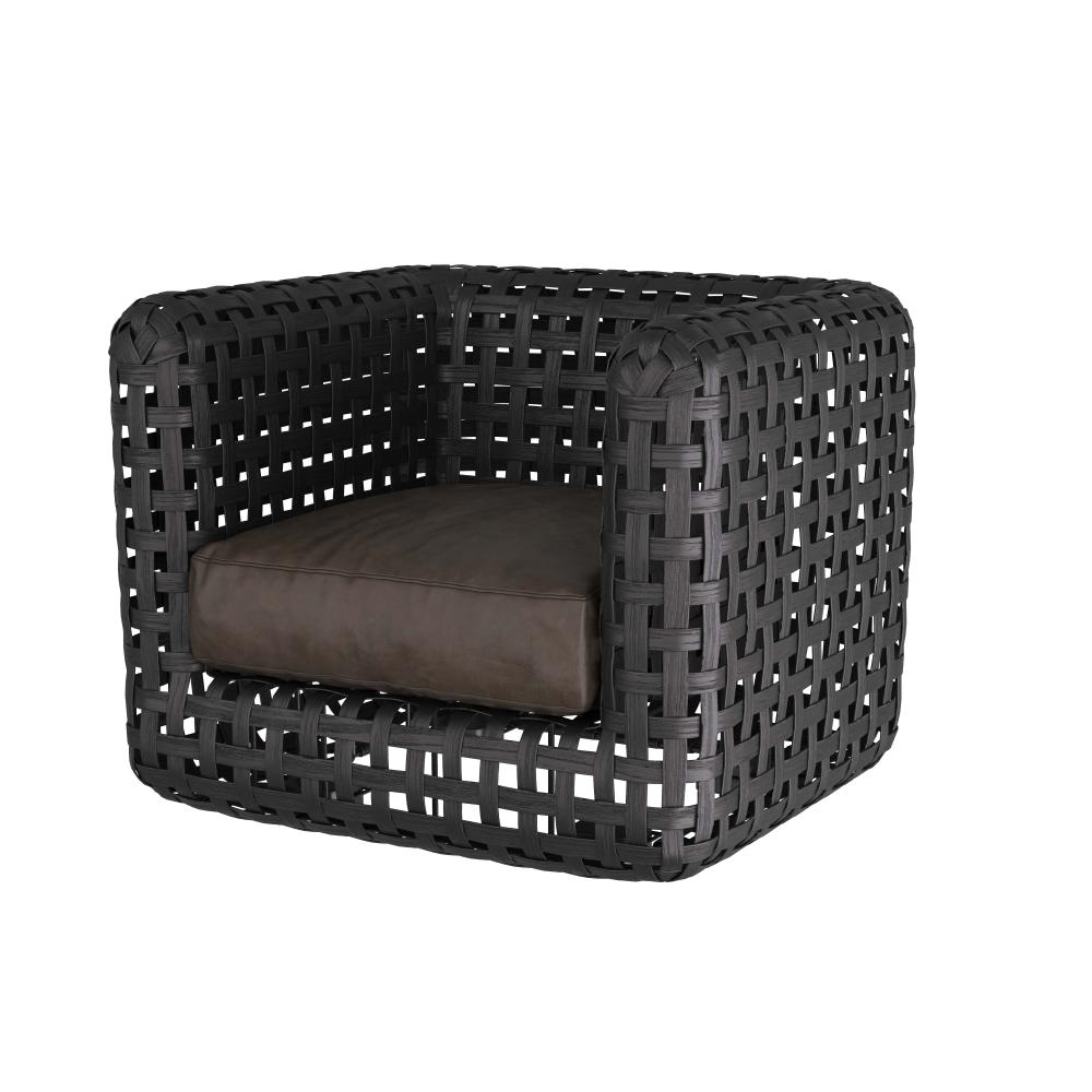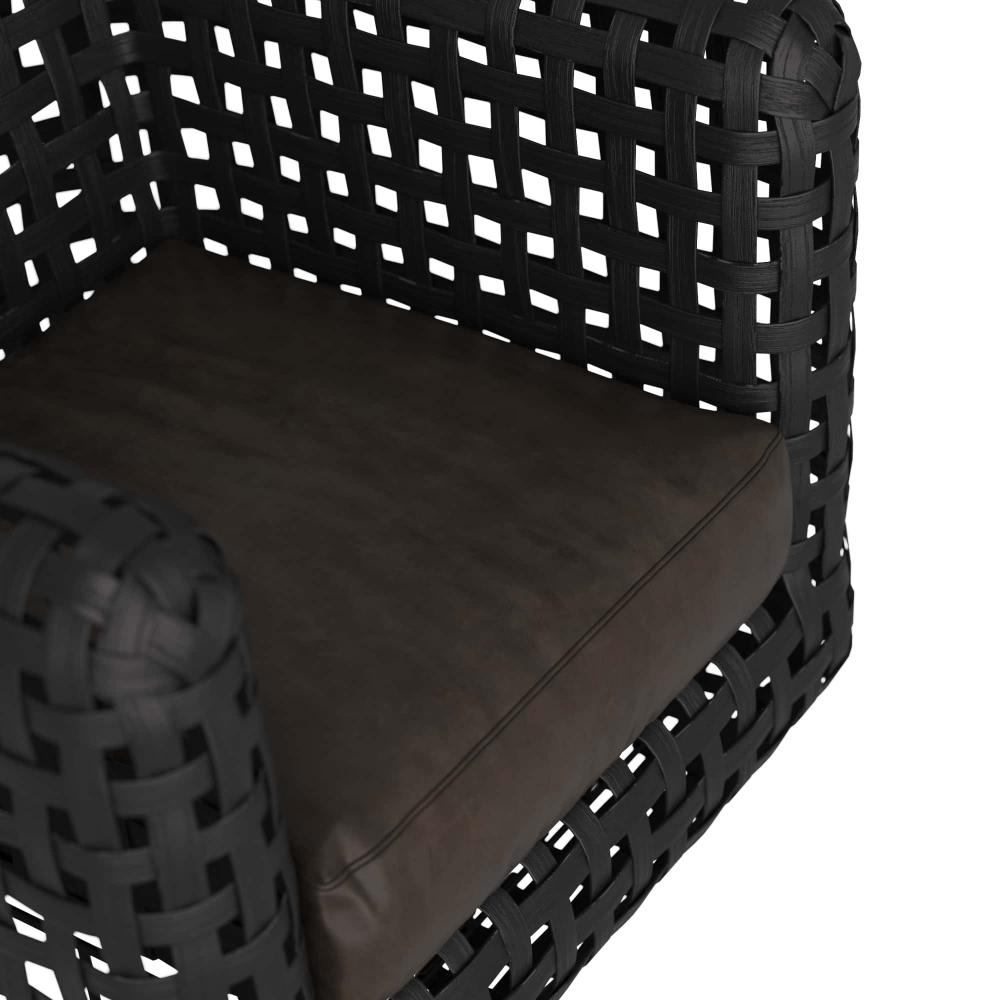 THE BEAUTY OF THE TEMPLAR CHAIR LIES IN THE ARTISANSHIP OF THE WEAVE ITSELF. DESIGNED IN A SIMPLE FORM, IN OPEN-WEAVE BLACK RATTAN WITH A GRAPHITE LEATHER LOOSE CUSHION, THE IMPRESSIVE, LOW PROFILE LOUNGE CHAIR NODS TO MIDCENTURY STYLE. FINISH WILL VARY.