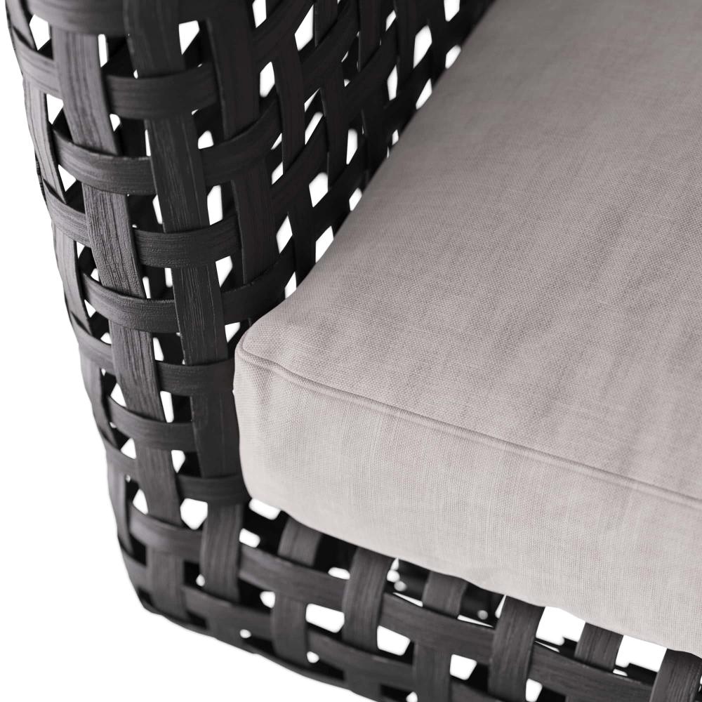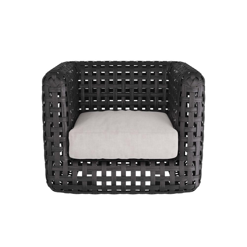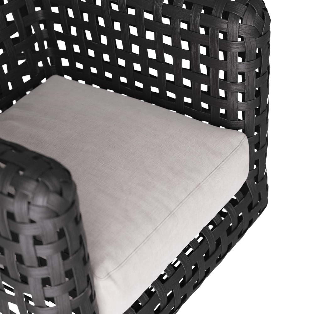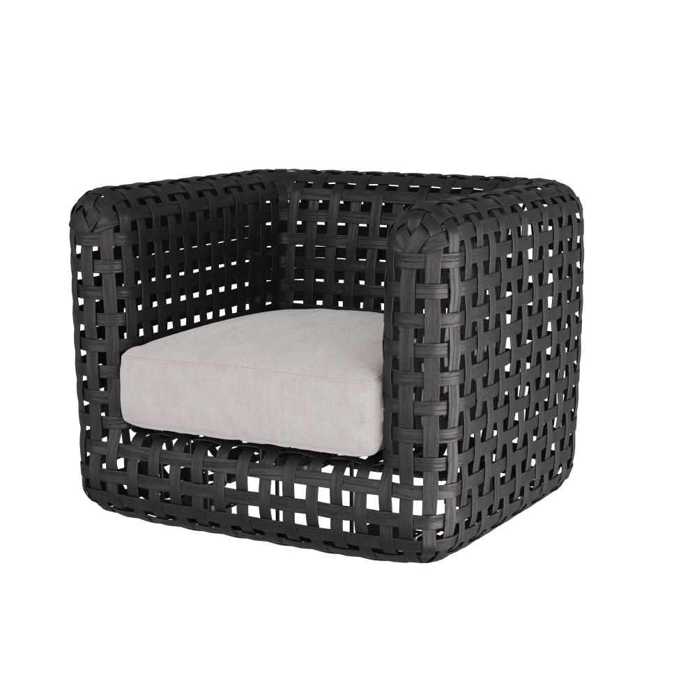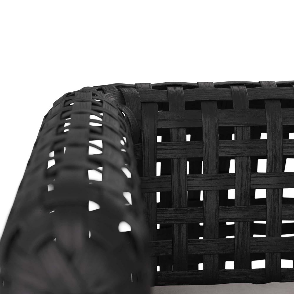 THE BEAUTY OF THE TEMPLAR CHAIR LIES IN THE ARTISANSHIP OF THE WEAVE ITSELF. DESIGNED IN A SIMPLE FORM, IN OPEN-WEAVE BLACK RATTAN WITH A BONE LINEN LOOSE CUSHION, THE IMPRESSIVE, LOW PROFILE LOUNGE CHAIR NODS TO MIDCENTURY STYLE. FINISH WILL VARY.