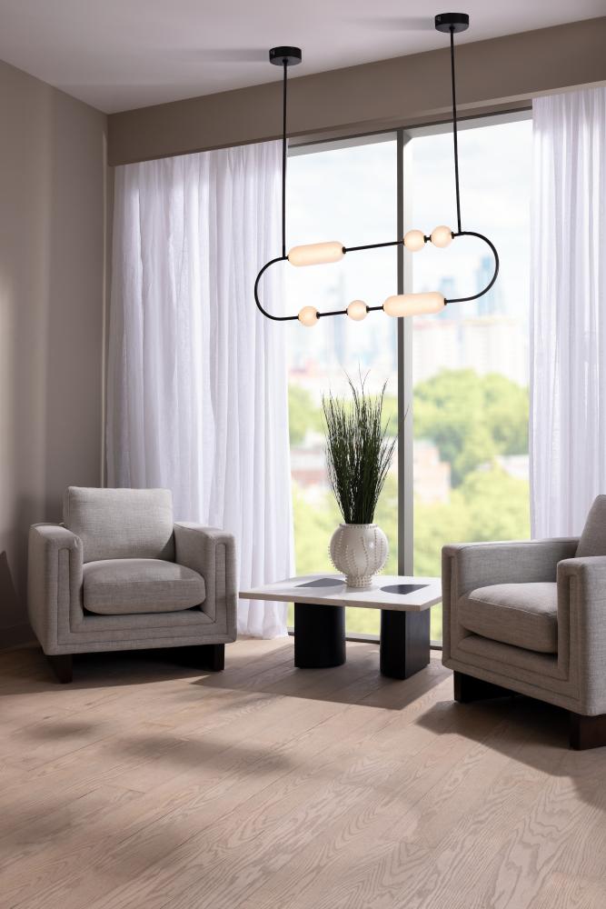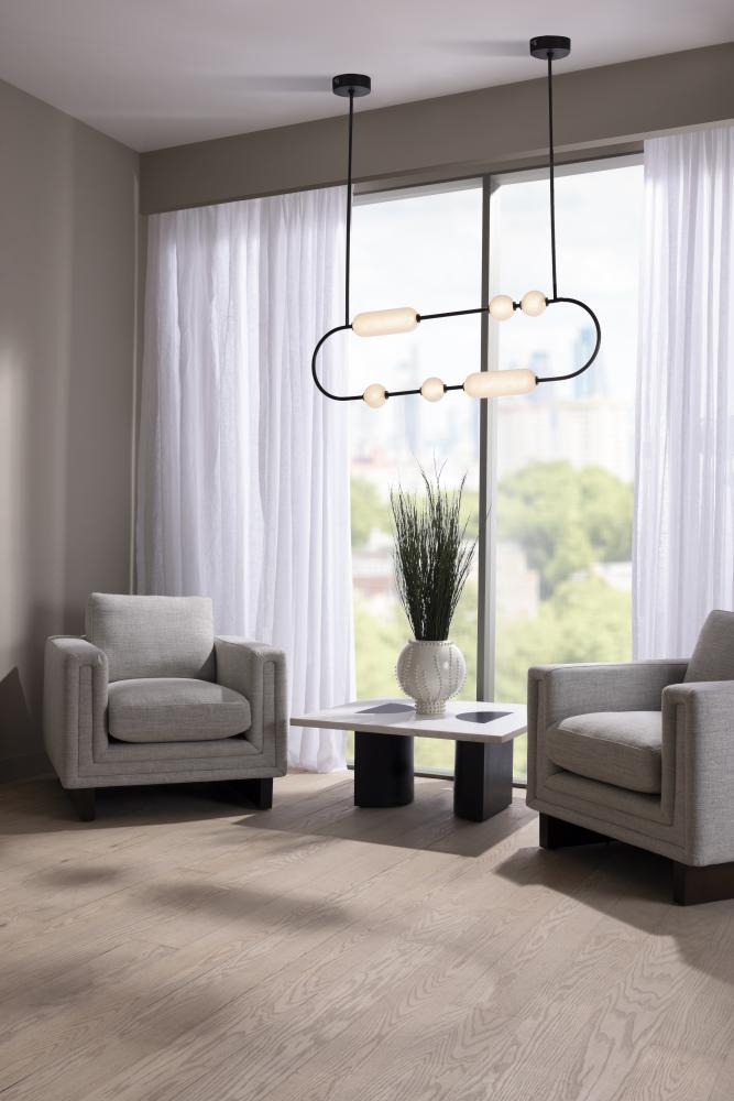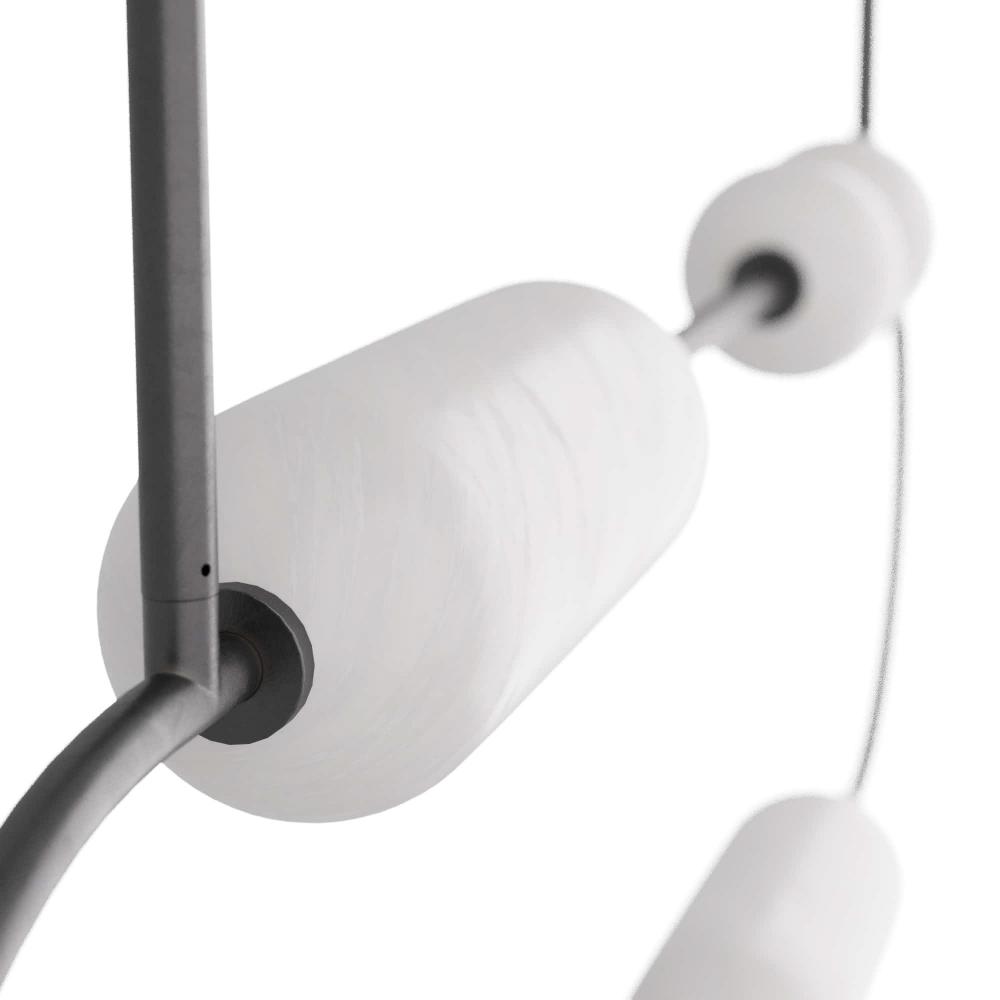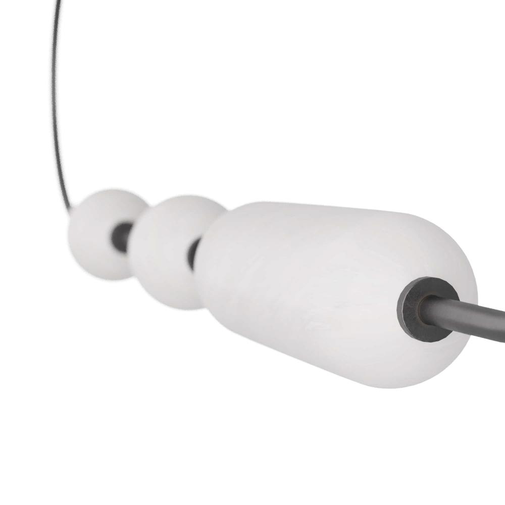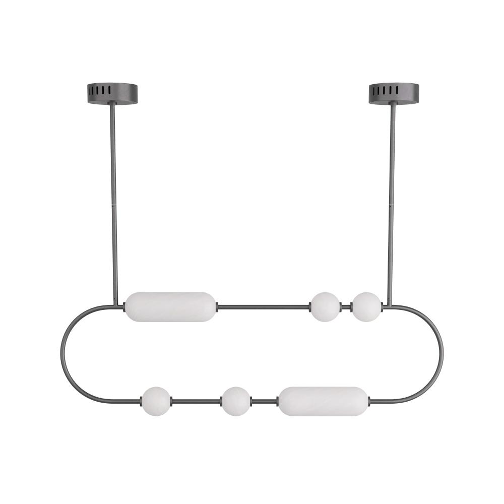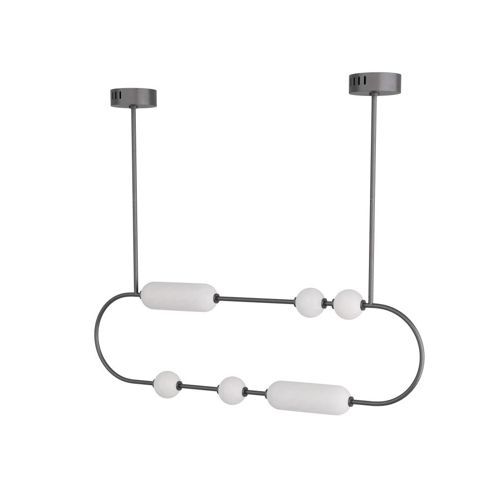 PLAYFUL YET REFINED, THE TENZIN CHANDELIER IS REMINISCENT OF BEADS STRUNG ALONG A CHORD. THE IMAGINATIVE ACCENT IS FORGED WITH ENGLISH BRONZE IRON IN A LINEAR, CAPSULE SILHOUETTE WITH ORBS AND TUBULAR SHAPES OF OPAL SWIRL GLASS ENCIRCLING THE FRAME. THE INTEGRATED LED LIGHT IS FITTED WITH A DUAL PIPE SUSPENSION. FINISH WILL VARY. DAMP-RATED, ALTHOUGH LIMITED COVERED OUTDOOR CONDITIONS MAY AFFECT FINISH.