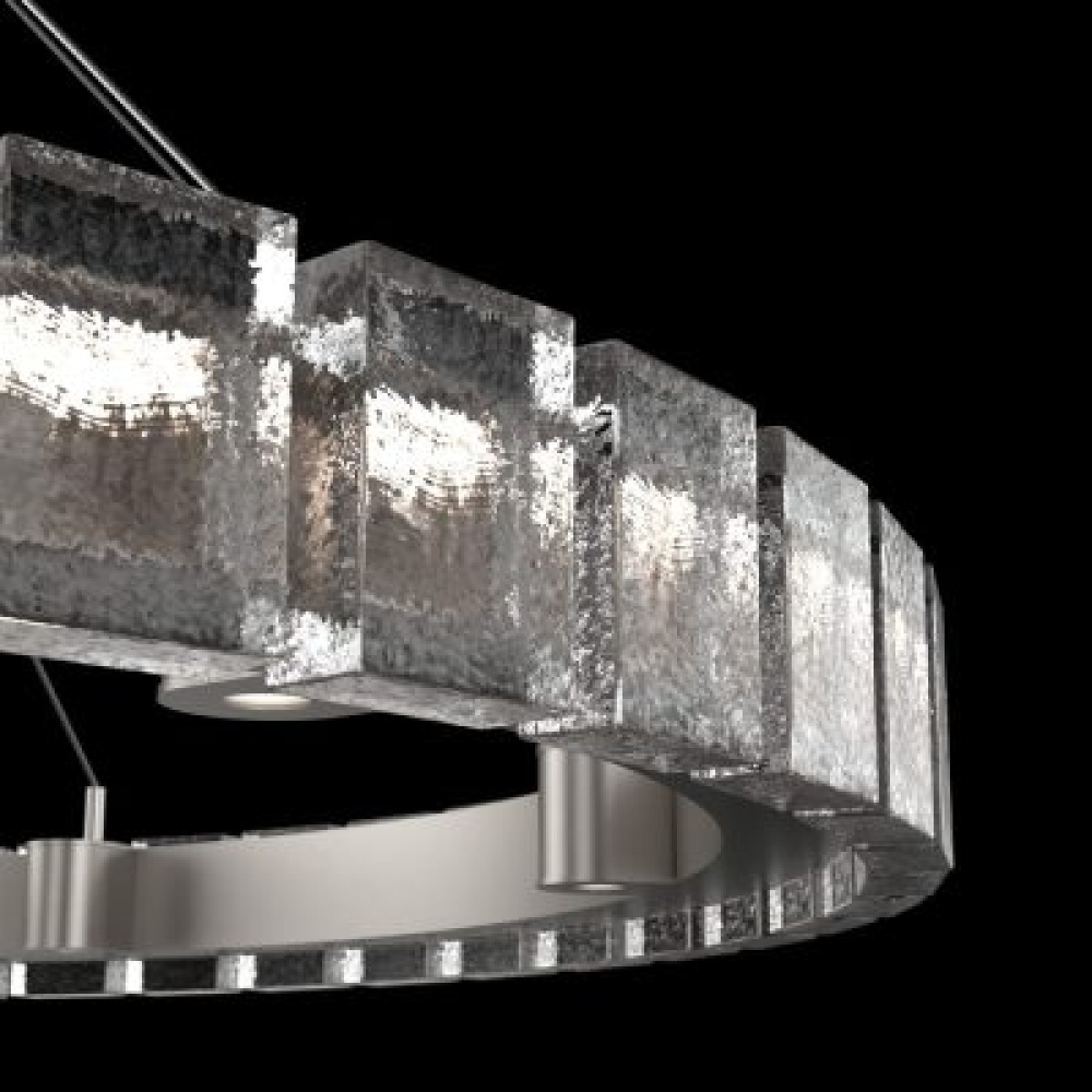 The 2,500-year old art of glass mosaic tiling is brilliantly brought to light in the modern-styled Tessera Linear Chandelier. Choose from five tile motifs in artisan cast crystal glass, two wood-inspired accent motifs, and several finishes. Tessera fixtures are illuminated with 93 CRI integrated LED and are available in 2700K or 3000K color temperature.