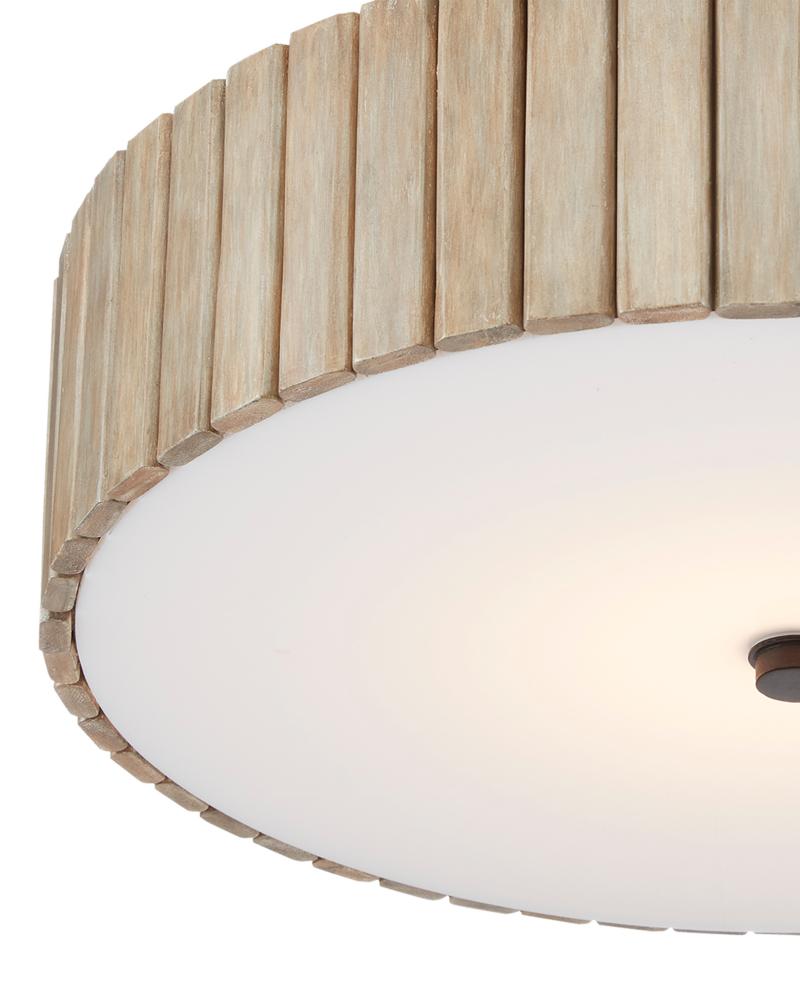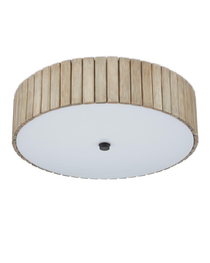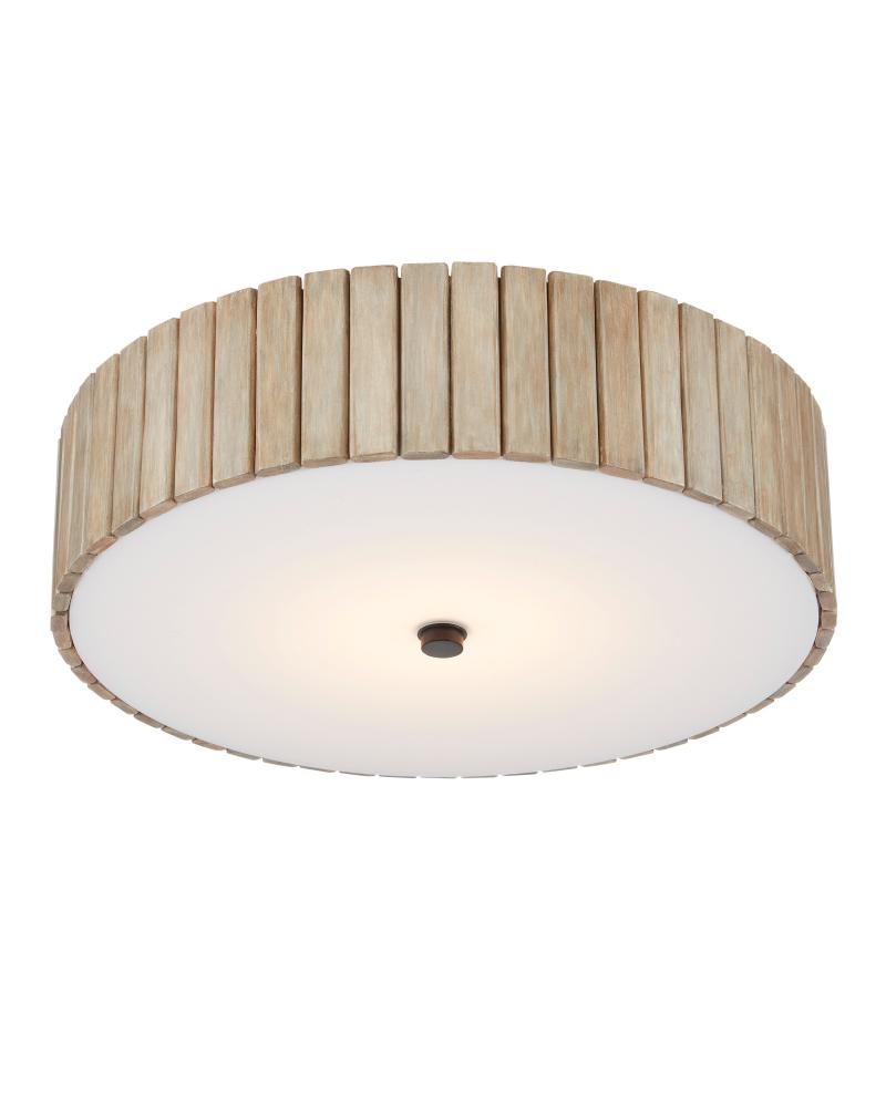 Sustainable materials and modern natural style were the inspirations for the Tetterby Flush-Mount. Made from natural bamboo in a light taupe finish for a whitewashed effect, this tan flush-mount is one of our offerings fitted with integrated LED technology. The blacksmith finish on the finial that holds the acrylic diffuser in place adds a contrasting element.