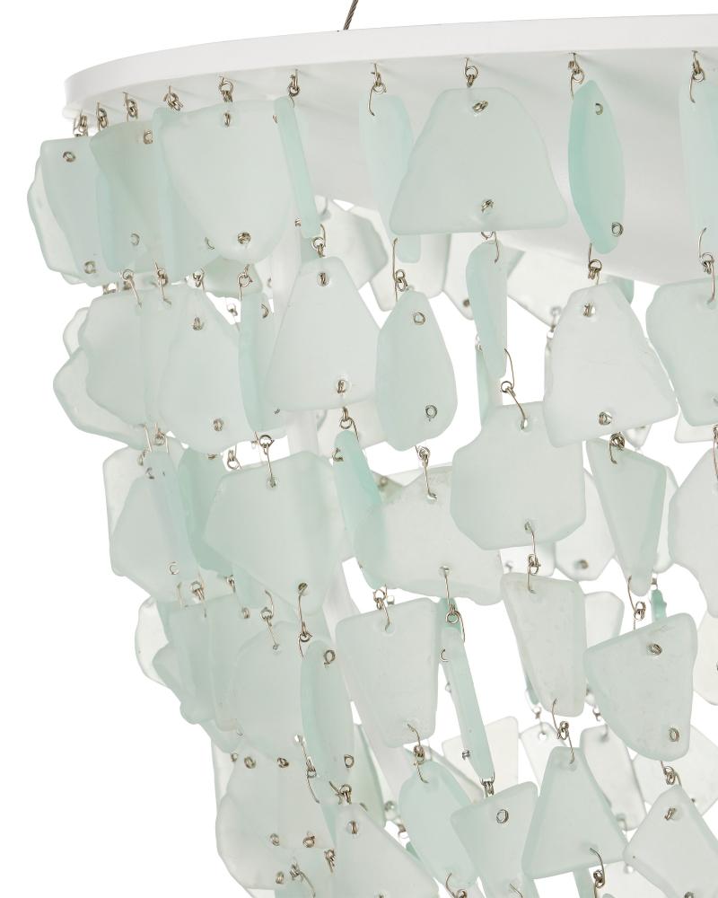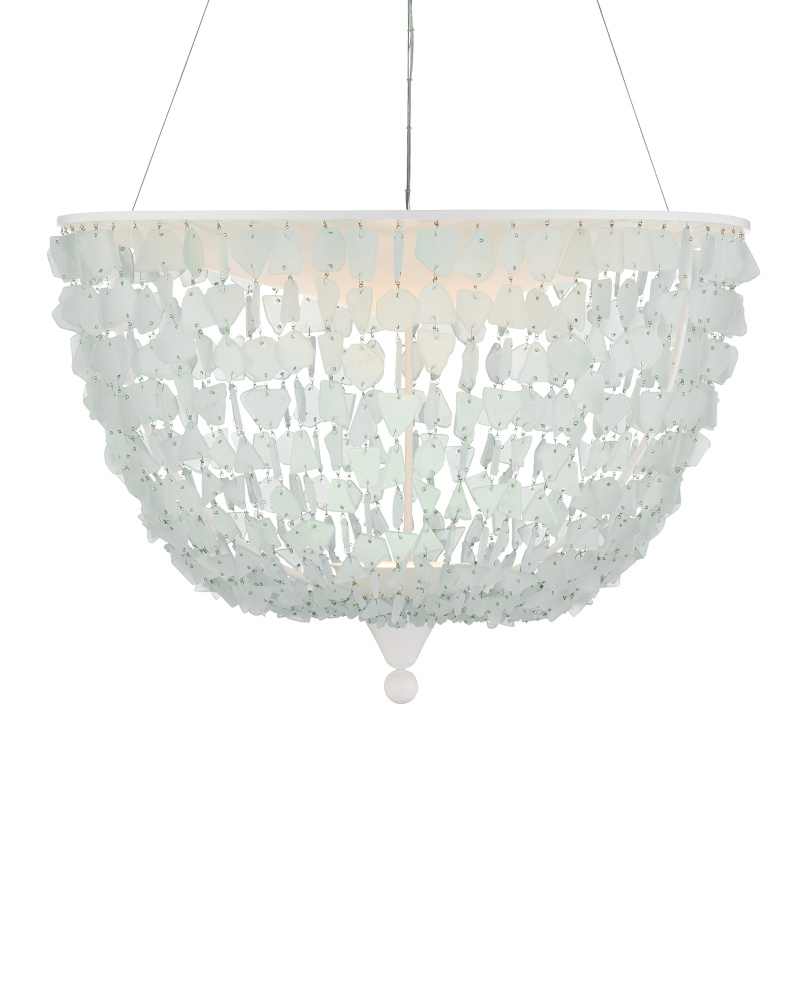 The inverted dome shape of the Thalassa Pendant becomes luminous when it is strung with seaglass. The painstaking patience it takes to assemble a fixture like this makes it an artisanal piece. The Sugar White finish on the frame and the aircraft cable from which it hangs make this a light and airy composition that will look beautiful in a contemporary setting or a room with a coastal aesthetic. Adjustable from 42" to 160" with use of included chain/rod kit/cable. If your space calls for a longer drop, additional chain/rods/cable is available for purchase.