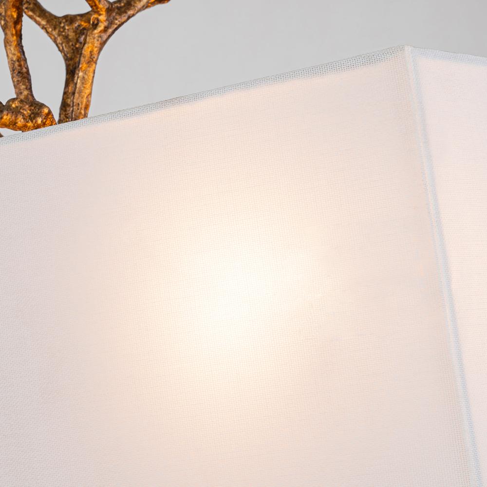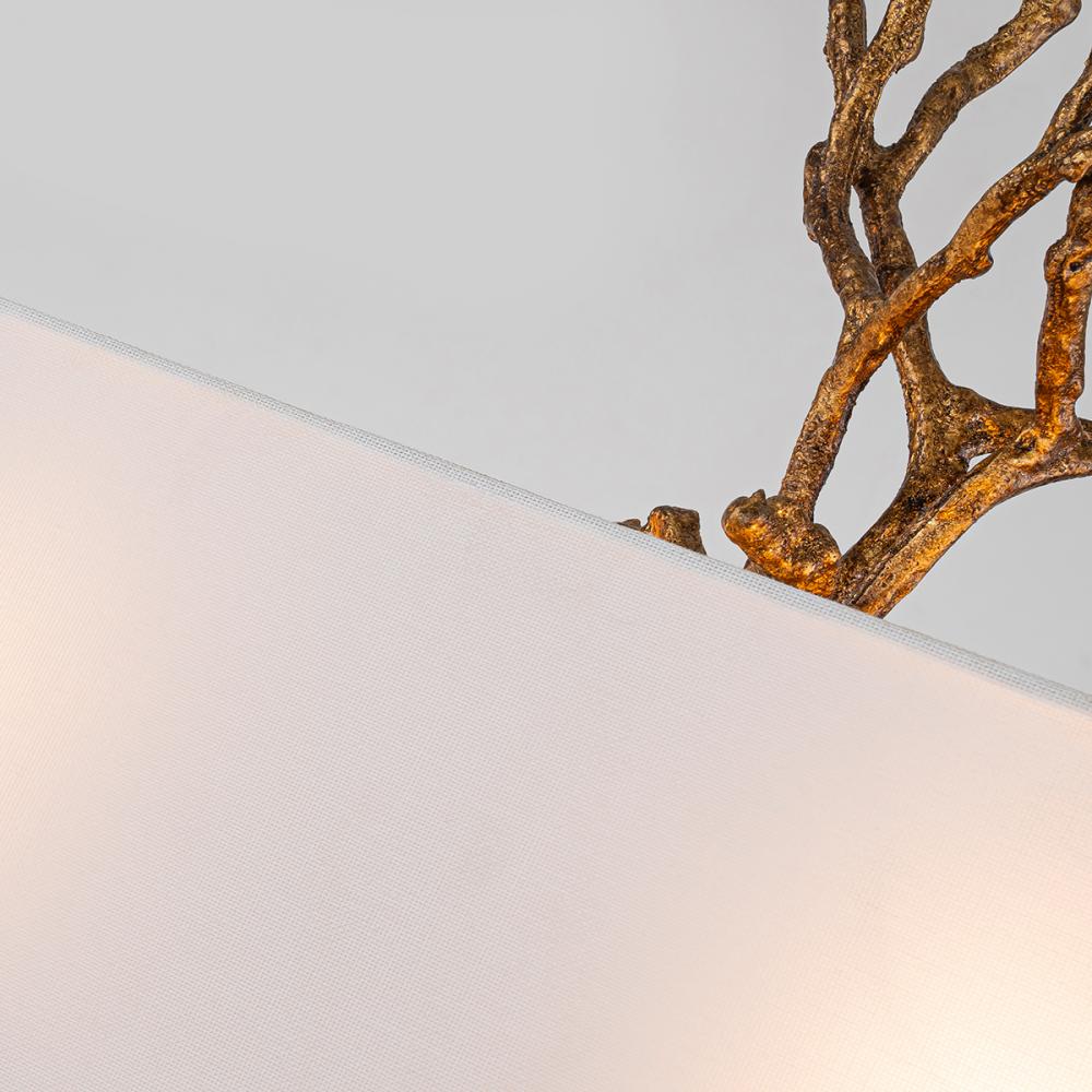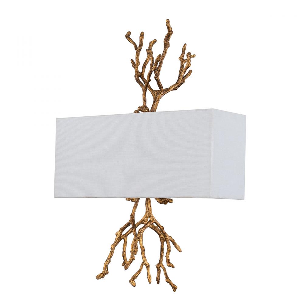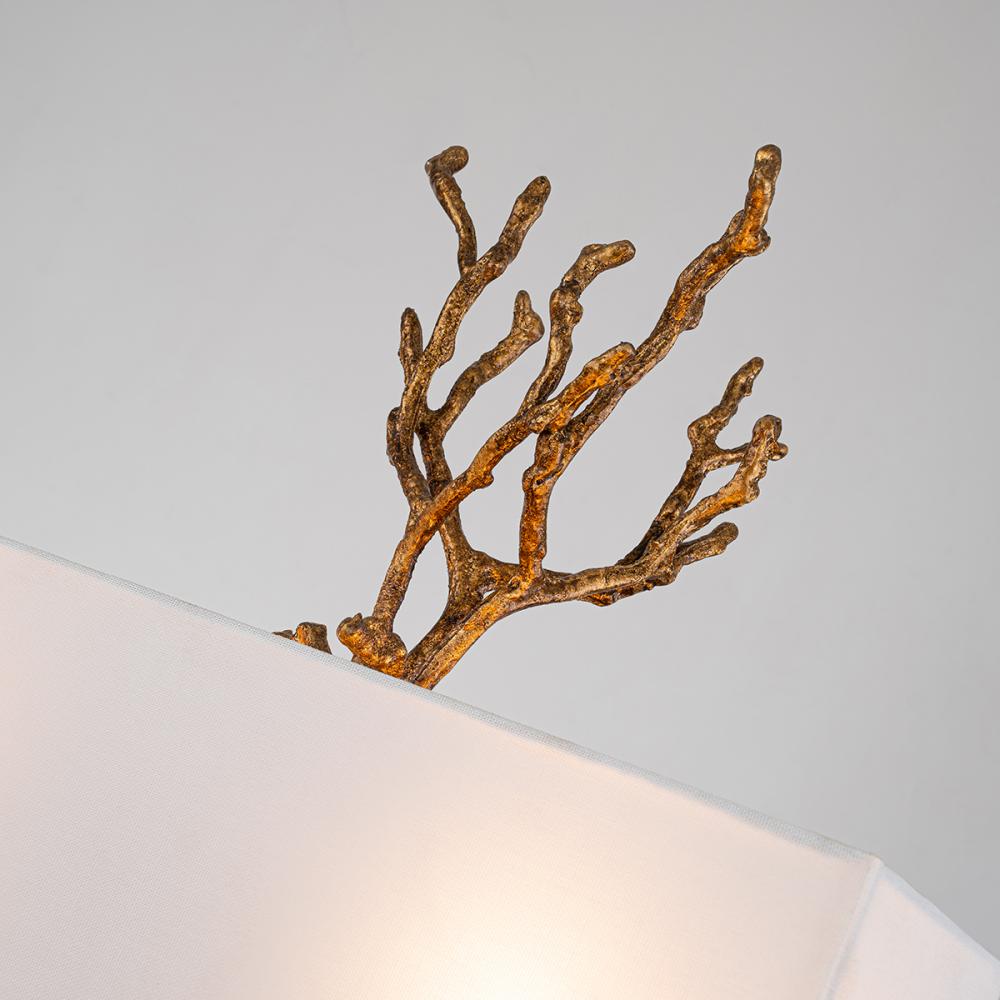 The Coral sconce is a two light beauty. Two flourishes of the coral shape highlight an off white fabric shade.