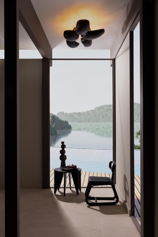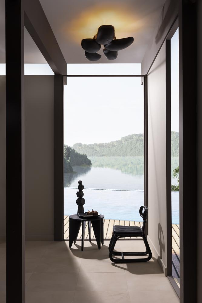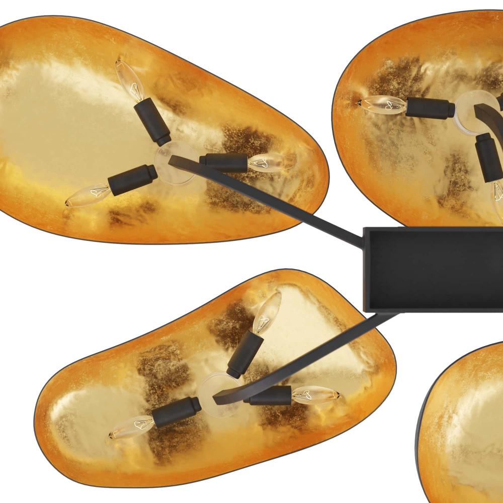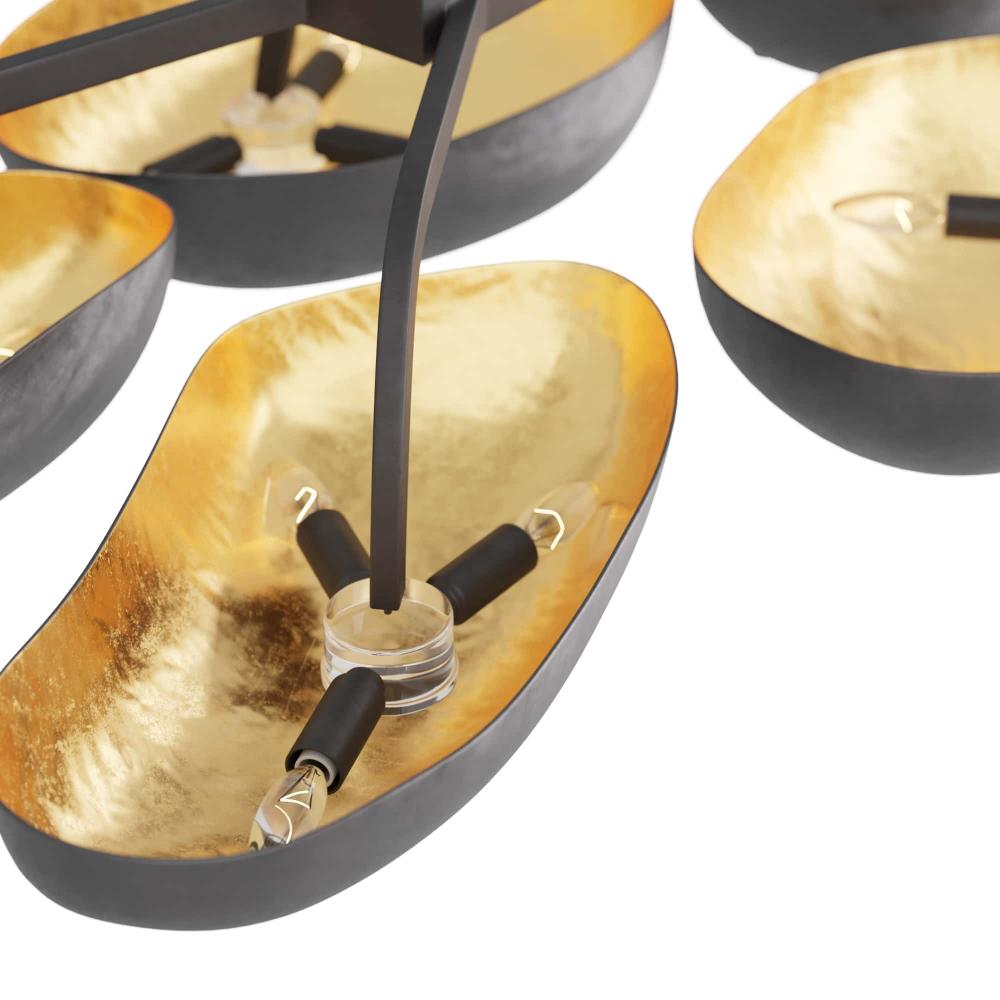 WITH FIVE SCULPTURAL POD-SHAPED SHADES, THE THEO SEMI-FLUSH MOUNT IS A BOLD ACCENT IN ANY SPACE. CREATED IN BLACKENED IRON WITH GOLD-LEAF-LINED INTERIORS, THE LIGHT IS BOTH ORGANIC AND OPULENT. THE LAMP’S INVERTED SHADES ILLUMINATE A ROOM WITH A WARM, UPWARDS GLOW. FINISH WILL VARY.
