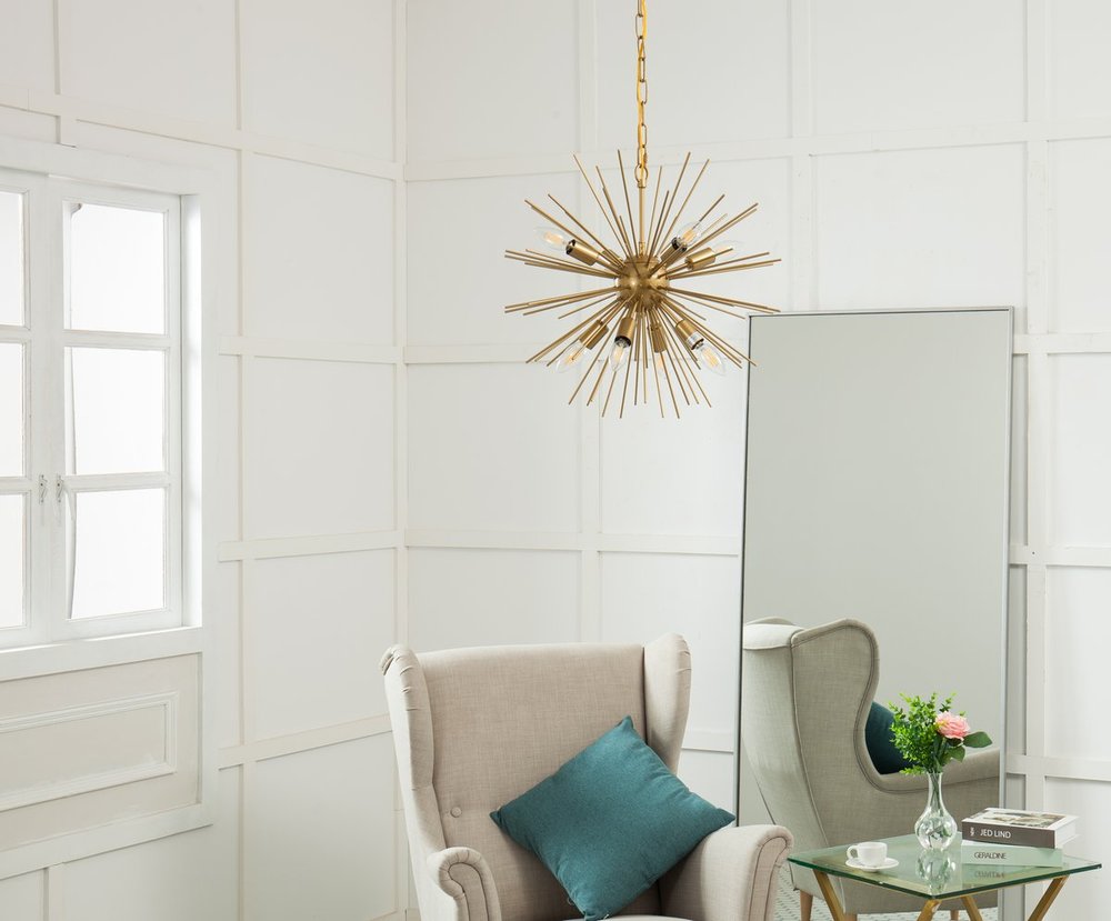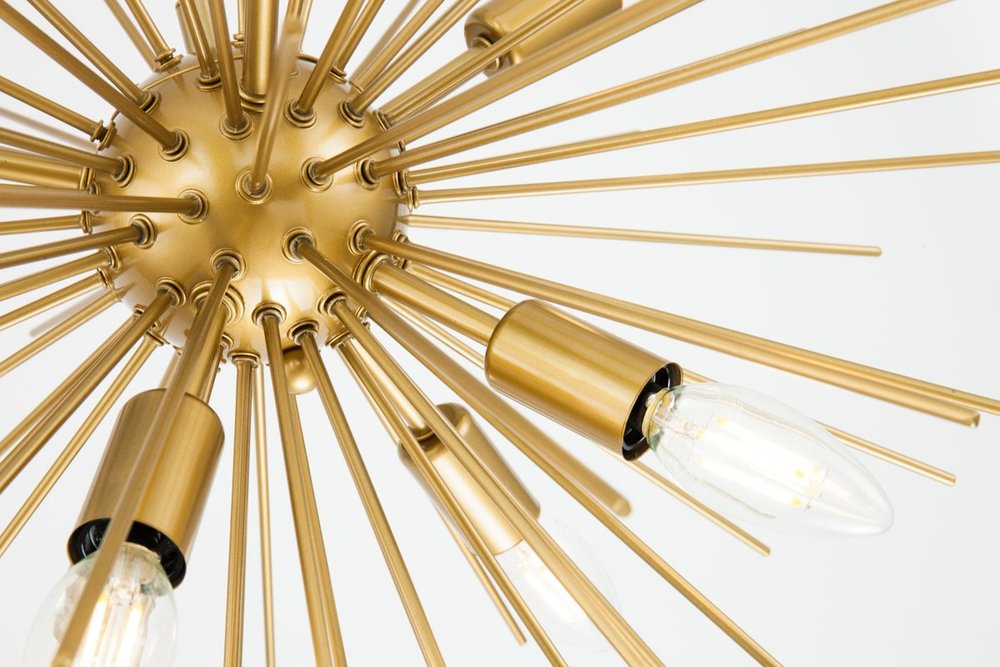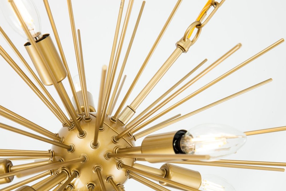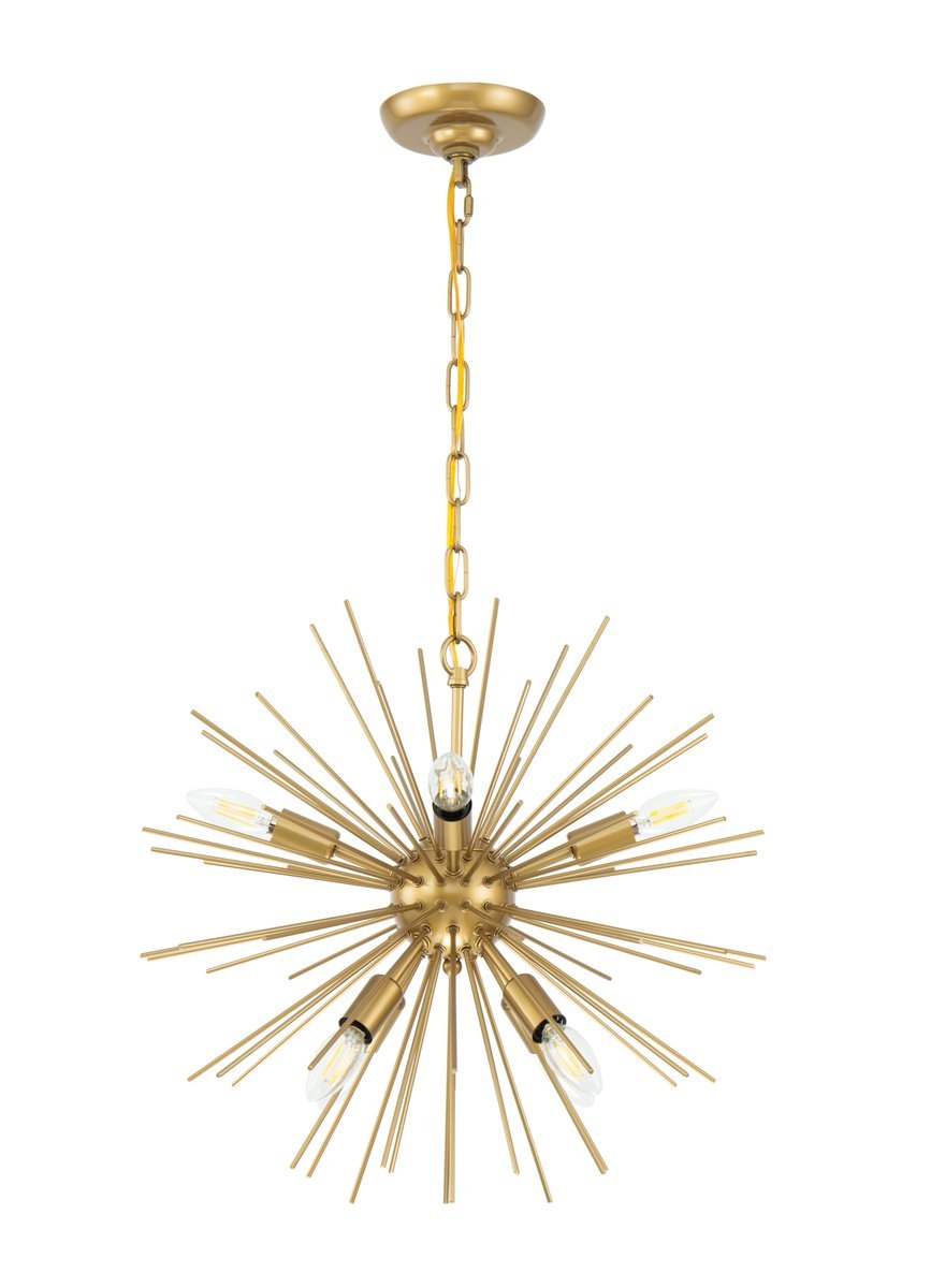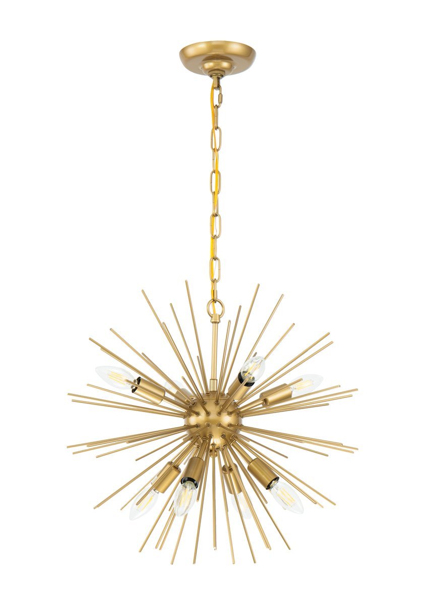 The Timber Collection of pendant lamps sure know how to make a statement! The 8 bulbs are mingle closely with the extruding rods, creating a game of hide-and-seek. But luckily for you, the lights are will always shine and ensure that your rooms will be both illuminated grandly and with confident style. Available in a brass, champagne, and two-toned brass and black finish, hang this fixture in your dining room, living room, foyer (light bulbs not included).
