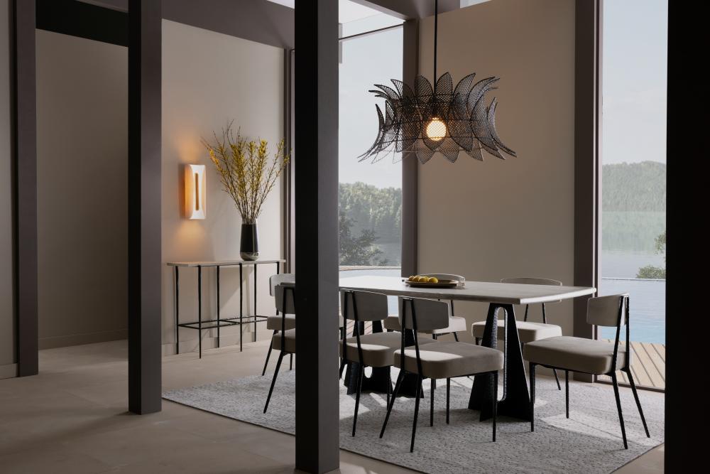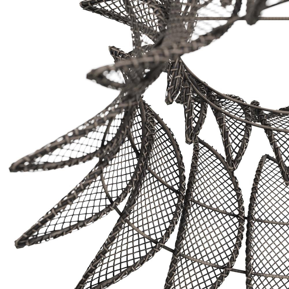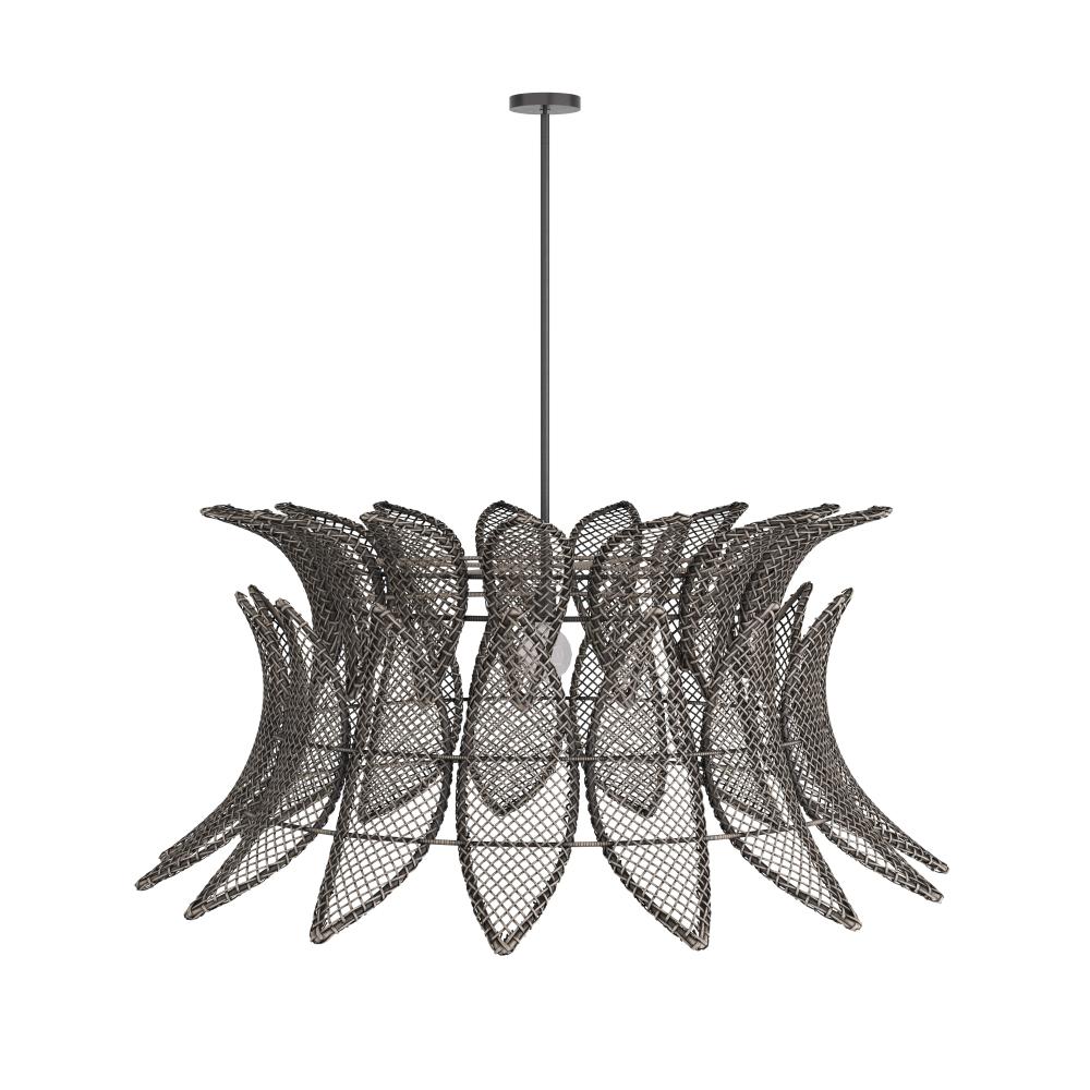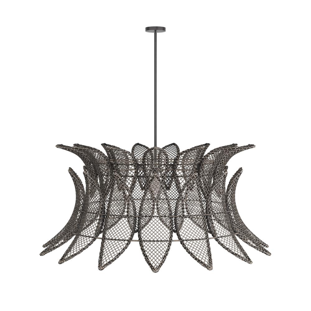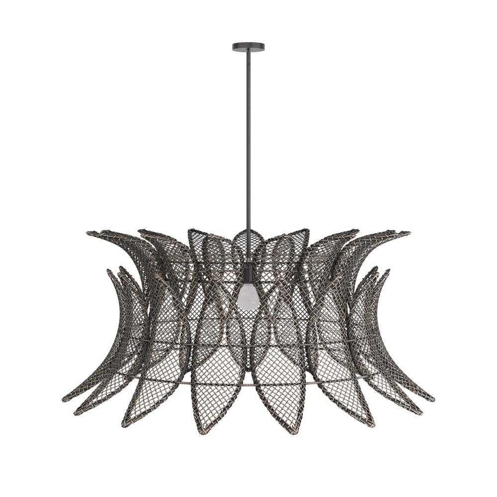 BOTANIC BEAUTY AND ARTISANSHIP COME TOGETHER IN OUR TISDALE PENDANT. THE STATEMENT PIECE IS FORMED IN WOVEN, GRAY-WASHED RATTAN PETAL SHAPES THAT BEND GRACEFULLY OVER A FLARED FRAMEWORK OF BRONZED IRON. THE LARGE-SCALE FIXTURE IS FITTED WITH A PIPE SUSPENSION ALSO IN BRONZED IRON. FINISH WILL VARY.
