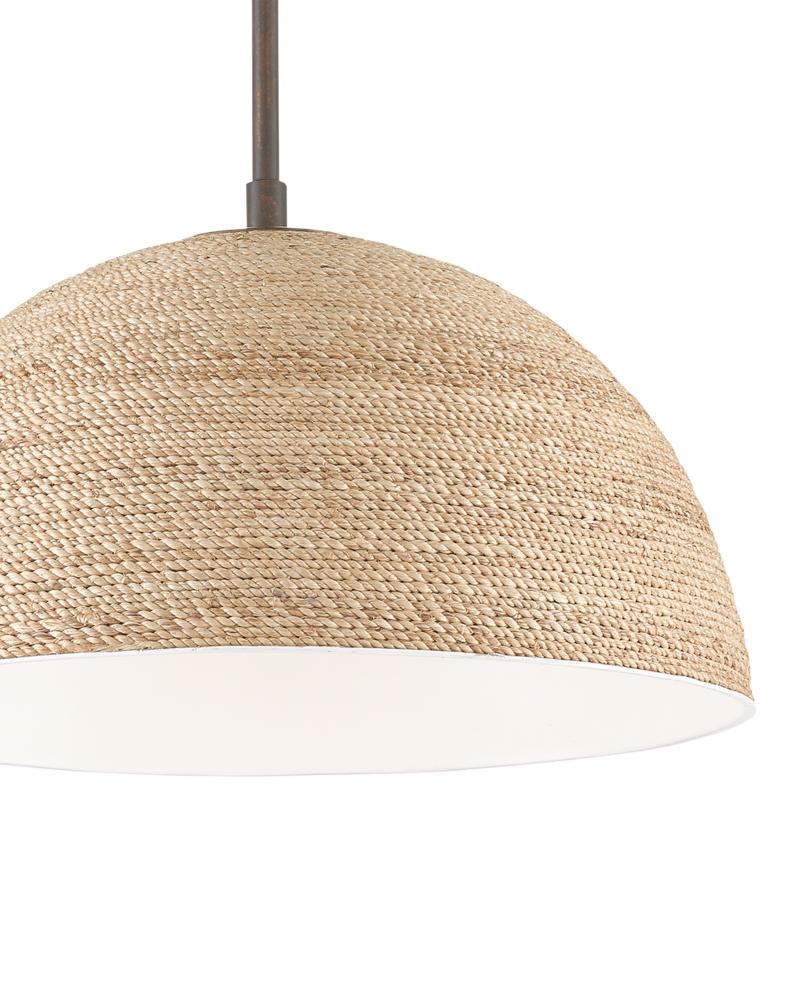 Hanging from a bronze-gold stem, the Tobago Pendant has the quintessential pared-down shape that is perfect for contemporary interiors. But the abaca rope that is painstakingly wrapped around the shade by our skilled artisans brings this modern pendant light a nautical flair. Another design detail of note that makes it contemporary is the sugar white finish on the interior of the shade. The Tobago would illuminate a contemporary coastal home beautifully. Adjustable from 16.5" to 58.5" with use of included chain/rod kit/cable. If your space calls for a longer drop, additional chain/rods/cable is available for purchase.