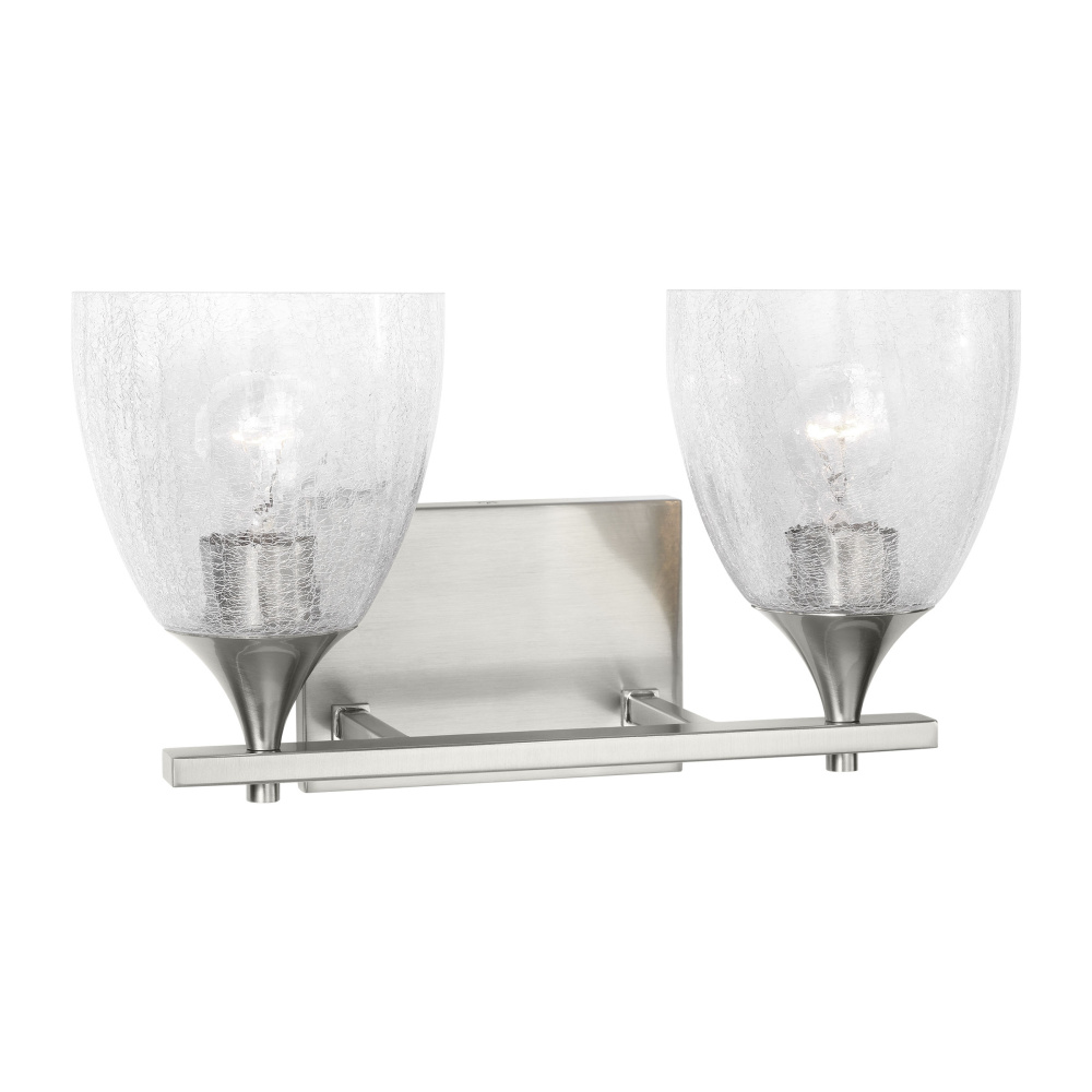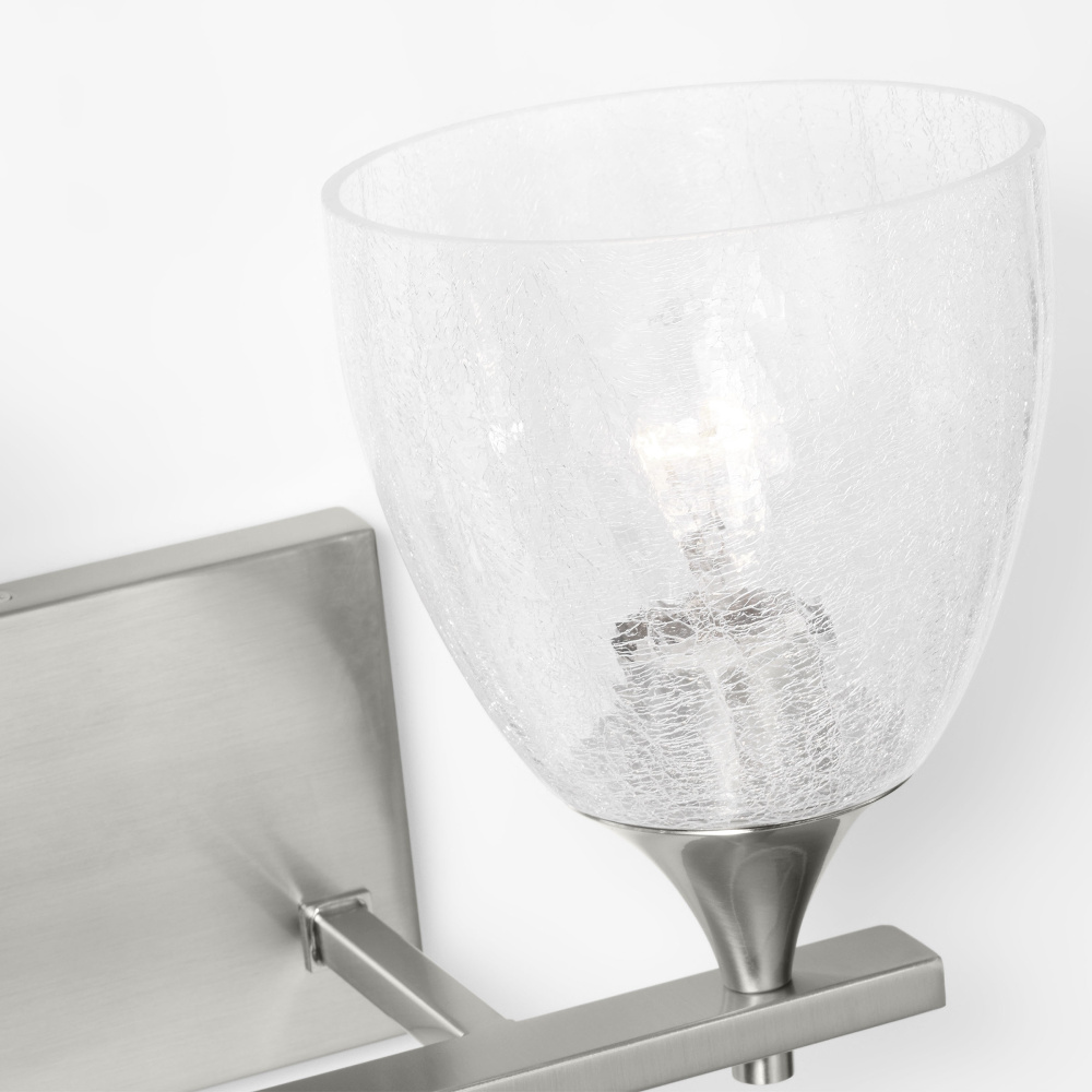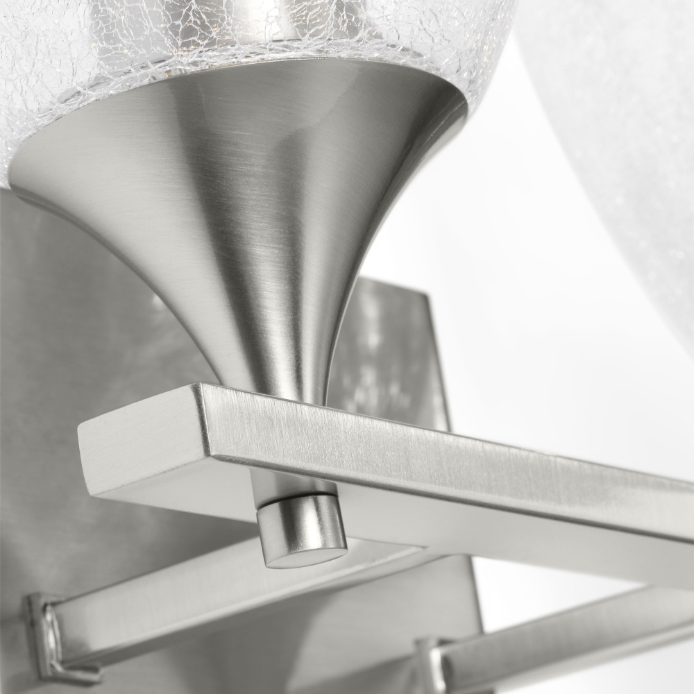 Crafted with Steel in a Brushed Nickel finish with clear crackle glass shades