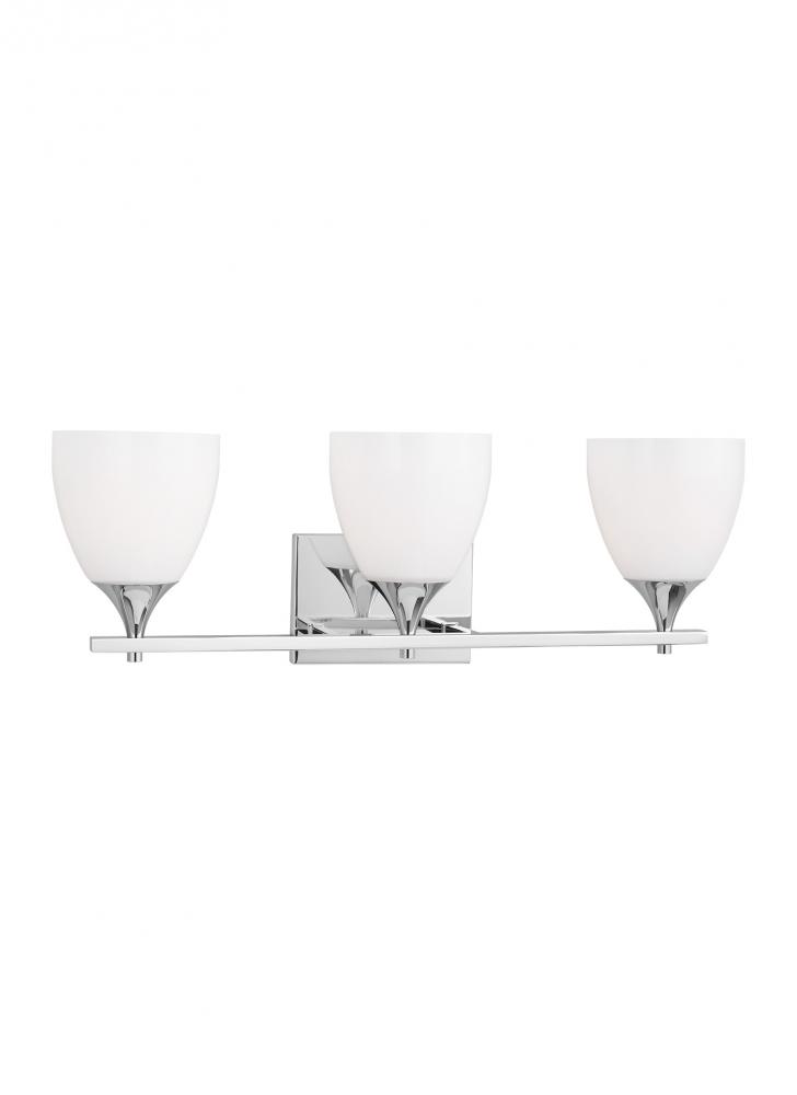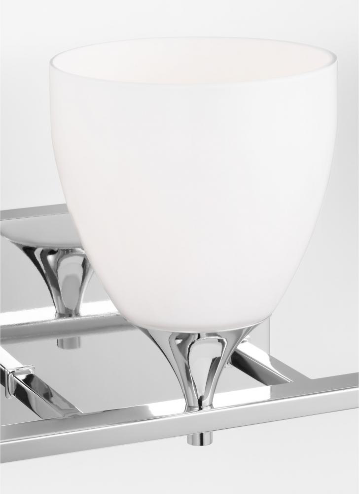 Made to coordinate across a broader range of bath hardware and design styles, this light breathes new life to its traditional shape with milk glass shades and striking, modern finishes