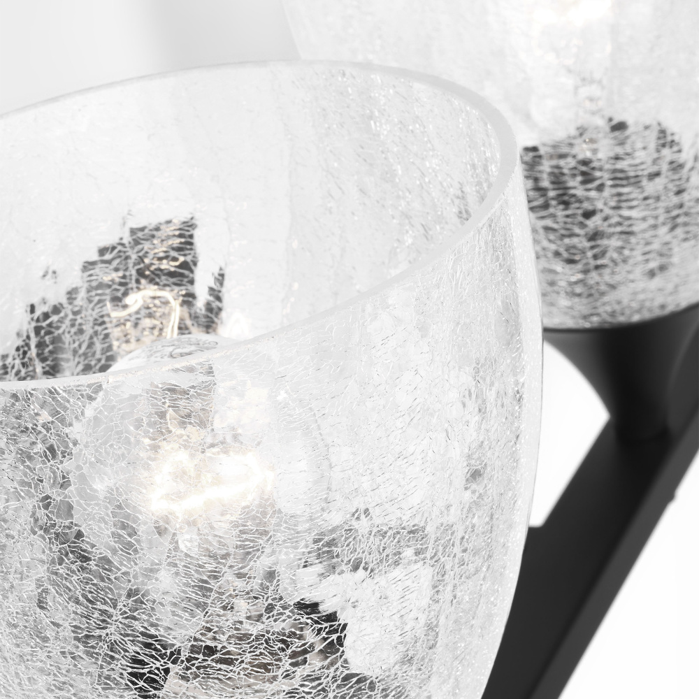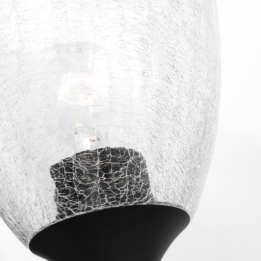 Crafted with Steel in a Midnight Black finish with clear crackle glass shades