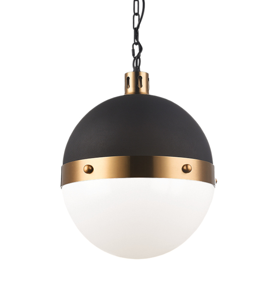 The Torino Pendants take elegance and simplicity and blends them perfectly. The combination of Matte Black and Aged Gold Brass or Brushed Nickel metal meeting in the middle with opal glass or clear glass makes a powerful statement in any room.Two sized globes are available in both finishes, use them individually or hang multiple pendants grouped together for a masterpiece. LIGHTBULBS NOT INCLUDED