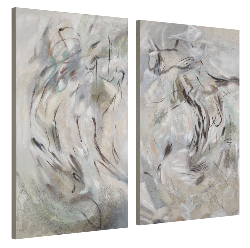 Hand painted on high-quality stretched canvas, this set of two wall art canvases is ideal for interiors that lean transitional or modern. Generous dimensions and 2-way hanging allows for a multitude of display options letting you choose the arrangement that best suits your design vision for the space you’re perfecting.