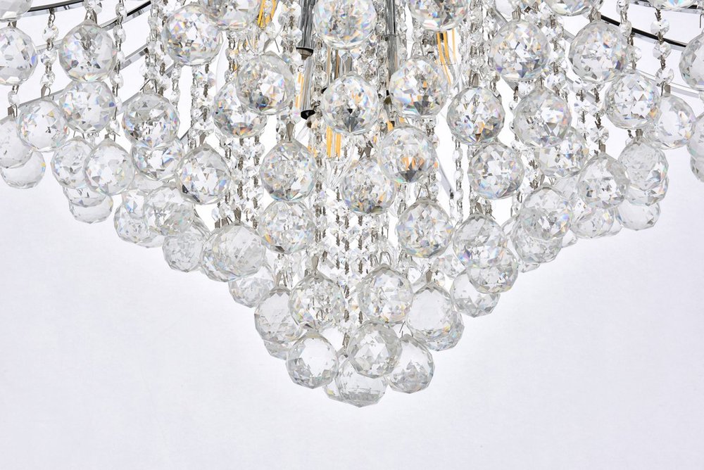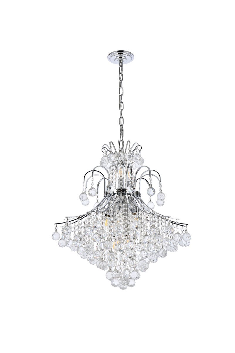 Lamp features a diameter of 25 inches, a height of 31 inches, and requires 15 candelabra bulbs