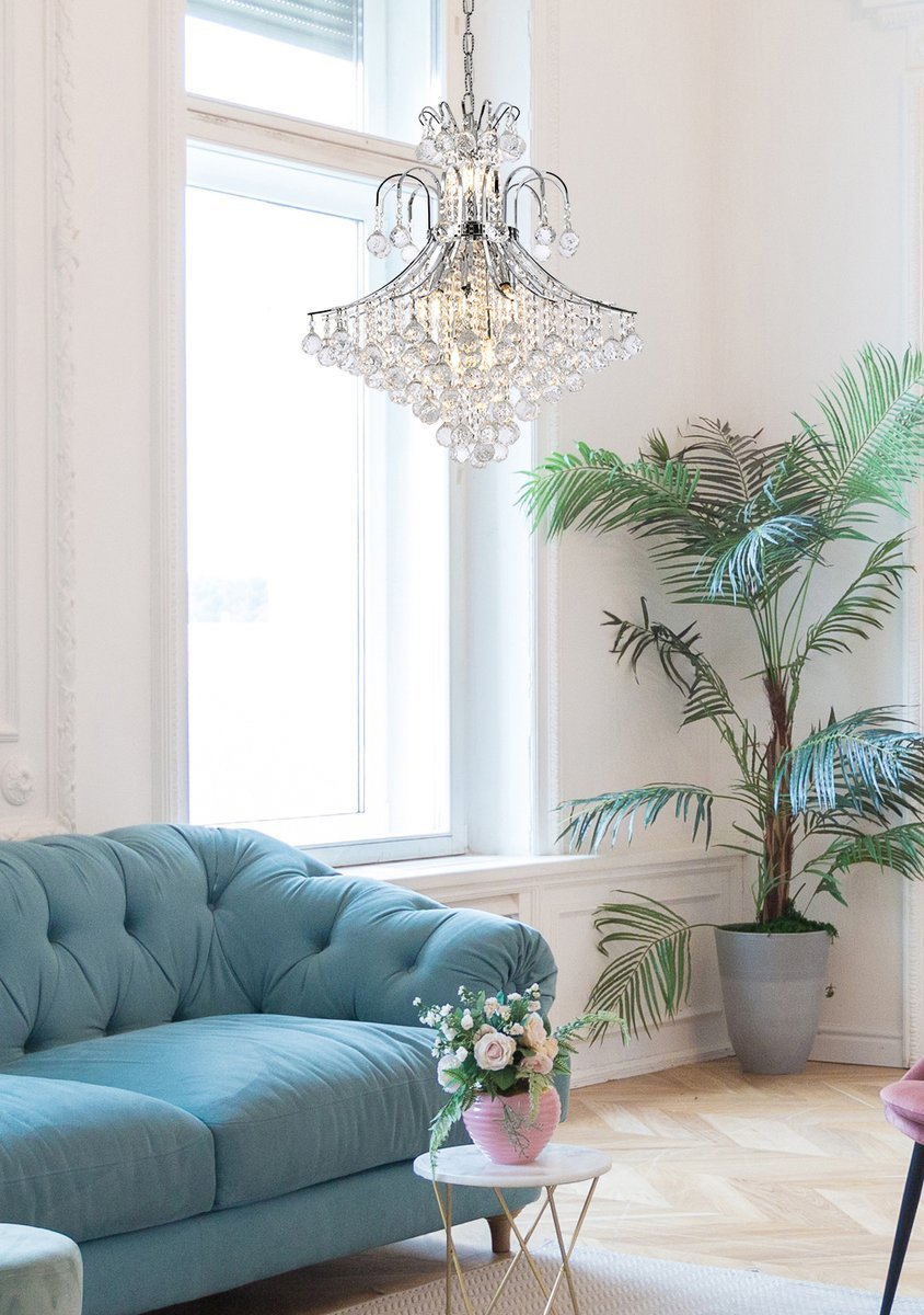 A treasure trove of glittering crystals, Toureg collection pendant lamps are generous with their sparkle. Stately curved steel arms and frame form an opulent flared shape available in chrome or gold finishes. Faceted clear crystal balls and crystal octagons offer a variety of options to choose from. Certain to be the center of attention in the dining room, living room, bedroom, or stairwell.