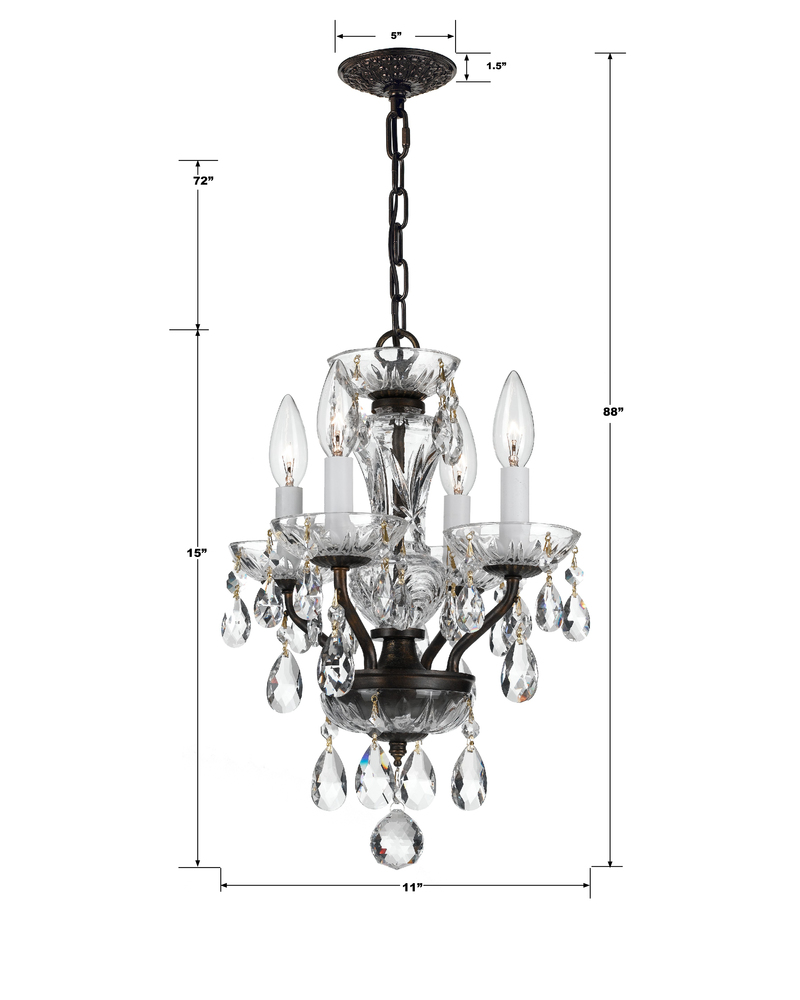Traditional Crystal 4 Light Hand Cut Crystal English Bronze Mini Chandelier