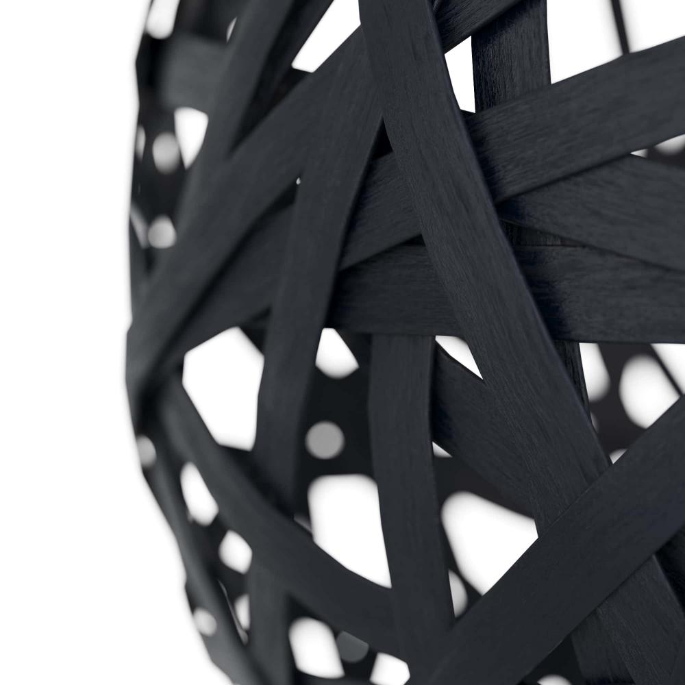 OUR TRAI PENDANT IS CRAFTED IN A TANGLE OF BLACK RATTAN STRIPS, REMINISCENT OF A BALL OF YARN. THE OVERSIZED, TEXTURE-RICH GLOBE DANGLES FROM A STEEL PIPE FINISHED ANTIQUE BRASS. LIGHT PEERS THROUGH THE PENDANT’S OPEN WEAVE, CASTING DRAMATIC PATTERNS OF LIGHT AND SHADOW. FINISH WILL VARY. DAMP-RATED, ALTHOUGH LIMITED COVERED OUTDOOR CONDITIONS MAY AFFECT FINISH.
