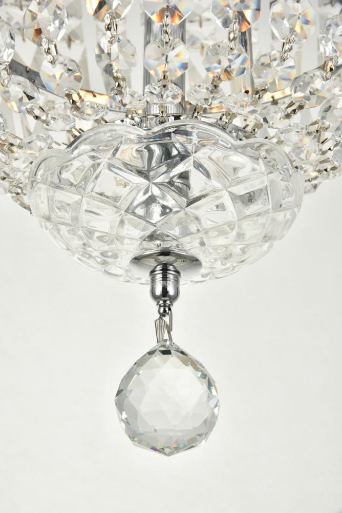 The Tranquil collection of flush-mount fixtures is everything you could imagine in the most decadent of lighting for your home. Captivating and serene, the radiance of this masterpiece will make you feel like a fireball of lustrous sparkle enraptures you. Chrome-finished bands of exquisite emerald-cut and baguette crystals are finished off with a mesmerizing spherical gem. These hypnotizing fixtures will add a touch of panache to your kitchen, dining room, foyer, or bedroom.
