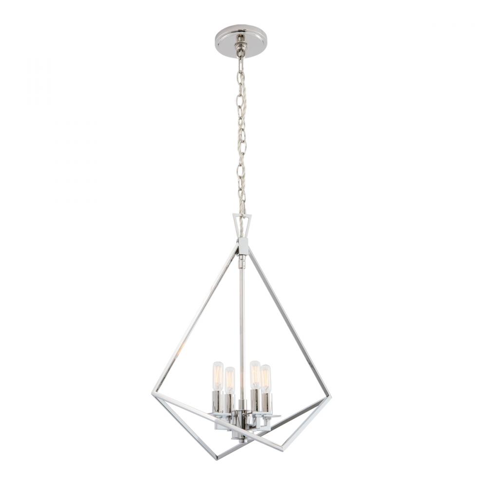 Cage chandelier turns farmhouse fixture inside out-with handkerchief shaped frame