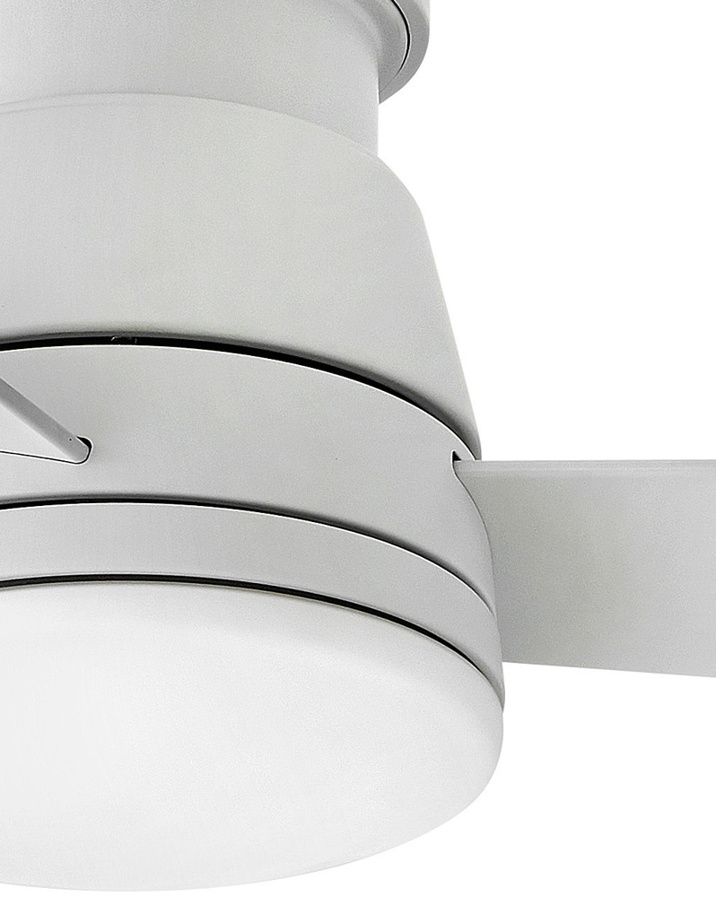 Trey features a sleek flush mount design that packs a powerful punch. Its transitional style comes equipped with robust blades that seamlessly pair performance and precision. Trey is offered in versatile Brushed Nickel, Metallic Matte Bronze and Matte White finish options, and its integrated LED lighting and DC motor technology deliver excellent energy efficiency. A timeless etched opal light kit completes the look for a refined appearance. Trey is so versatile; it can be used for both indoor and outdoor spaces. Blades are included with every fan.