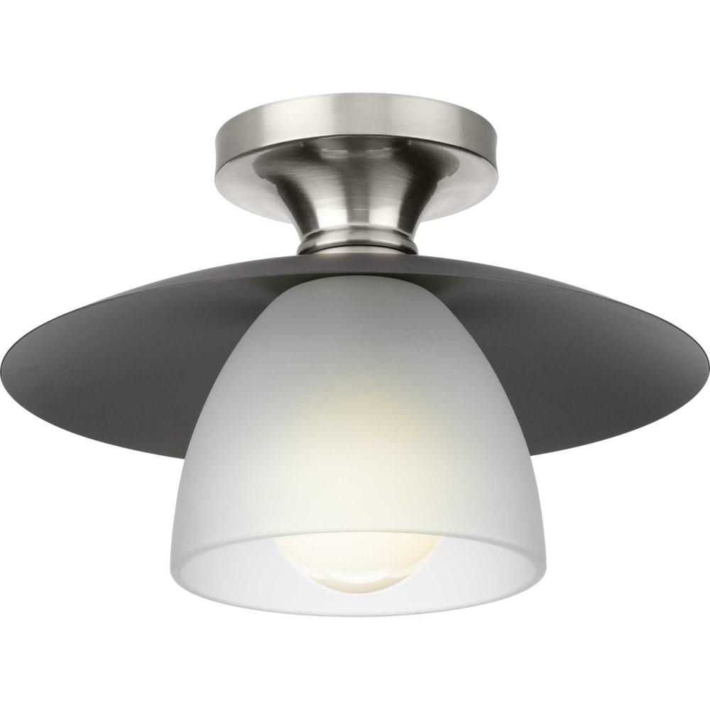 Simply curved lines form the basis of the Trimble Collection, whose mid-century modern inspiration is perfect for mid-century modern and luxe industrial spaces. A two-toned finish features an outer shade coated in subtle brushed nickel with a crisp graphite stem. A graceful etched glass dome shade presents rich visual interest while delivering pleasing diffuse illumination to kitchens, bedrooms, hallways and foyers.