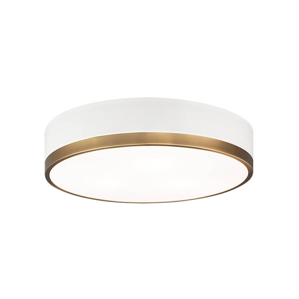 Trydor is an ultra modern take on the traditional flush mount with a higher profile.This two-tone series features a thick Black or White band with a thin contrasting finish of either Chrome or Aged Gold Brass. A versatile fixture, suitable for any room.
