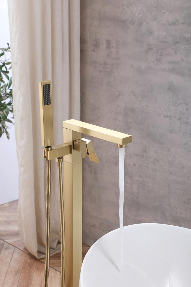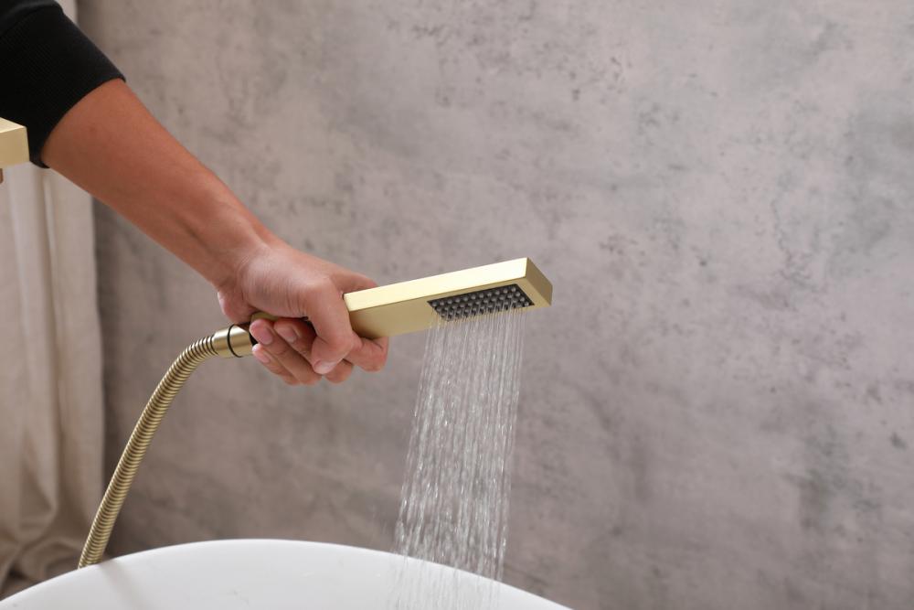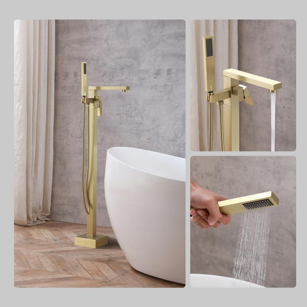 Indulge the ultimate in bath versatility with our bathtub faucet, complete with a convenient 35-inch long hand shower, bringing flexibility to your bathing routine. Choose between a soothing bath or a targeted hand shower experience, catering to your preferences. Crafted from premium stainless steel, our faucet not only adds a modern aesthetic to your bathroom but is also corrosion-resistant and built to last. With included supply lines, installation becomes hassle-free, saving you time and effort. The faucet's handy diverter lever enables effortless switching between the faucet and hand shower, allowing for a personalized bathing experience. Our bathtub faucet is UPC and IAPMO certified, ensuring lead-free materials and top-notch quality for your safety and satisfaction. Enjoy a maximum flow rate of 5.6 gallons per minute at 80 psi, offering robust water flow while conserving water and reducing utility costs. Embrace the elegance of our floor-mounted bathtub faucet, a space-saving alternative that exudes contemporary luxury, standing gracefully on your bathroom floor and complementing your decor with a touch of sophistication.