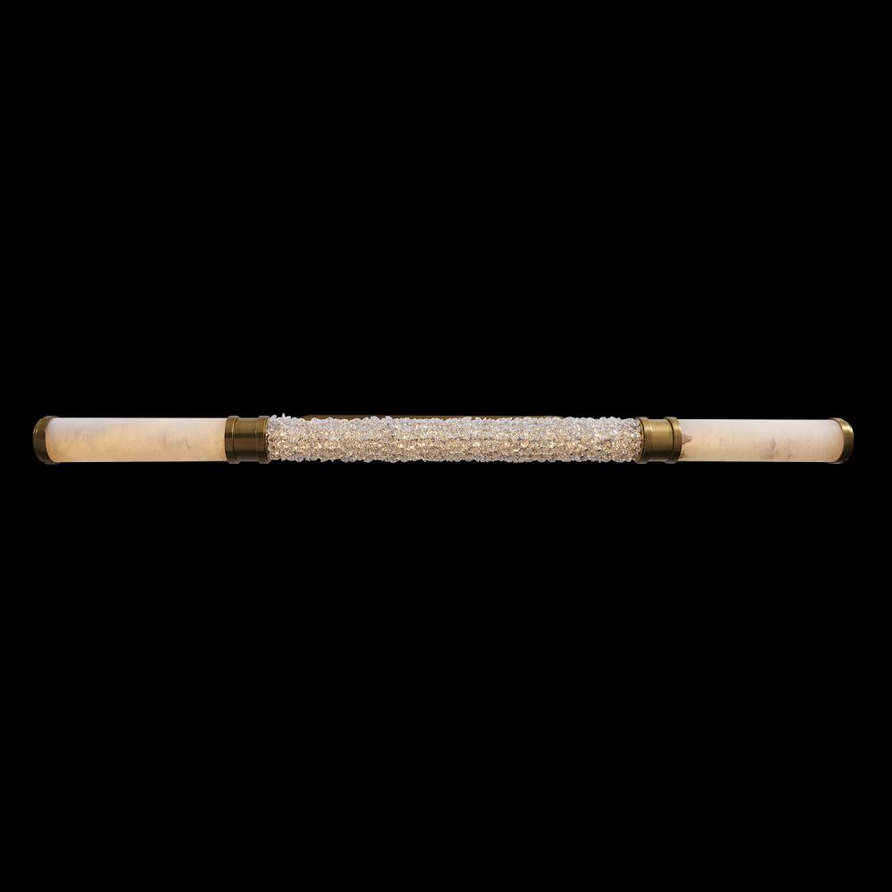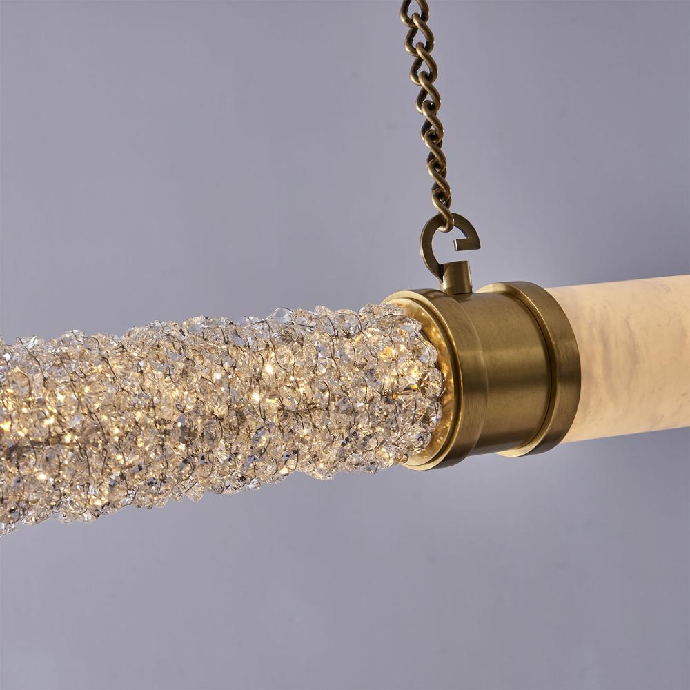 The Tubo features the layering of natural materials such as Alabaster, brass, and crystals to create complex beautiful textures that play with light. Add natural luxury to your living space with these Art Deco linear pendants that are offered in a Natural Brass finish and integrated LED lamping.