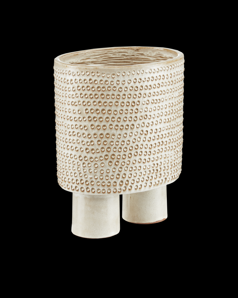 The Tula Large Ivory Bowl is a multi-dimensional work of art. Hand-thrown from ceramic, the pattern on the surface of the decorative accessory is achieved when an artisan punches it with a tool to create one circle at a time. The raised shapes that are created and the striations on the inside resist the ivory reactive glaze to let the original color of the material show through.