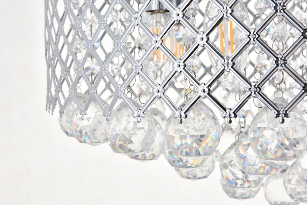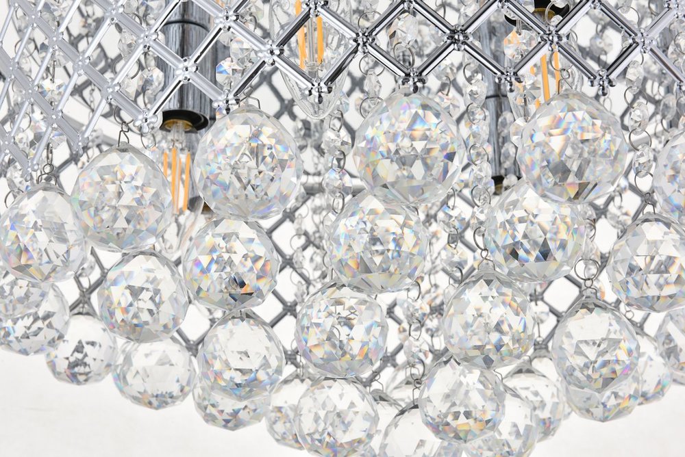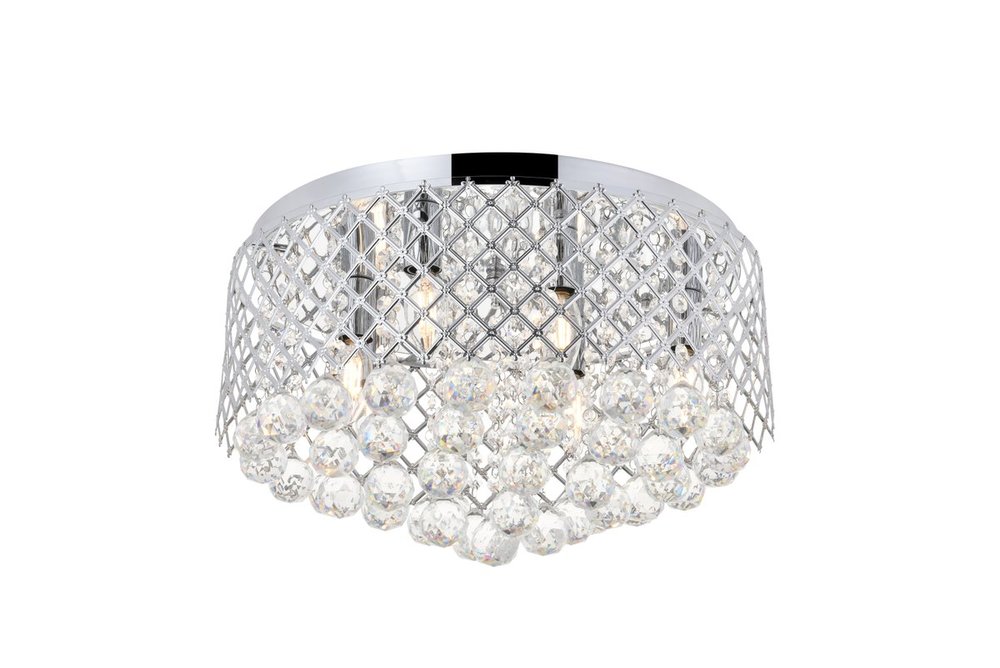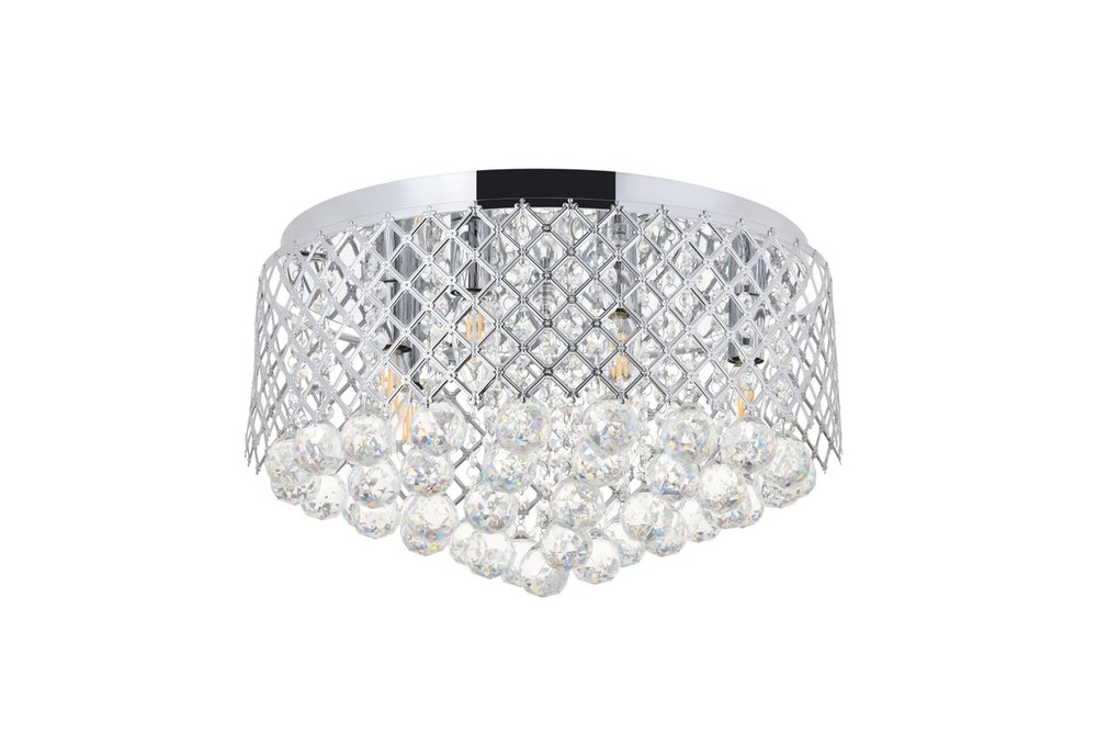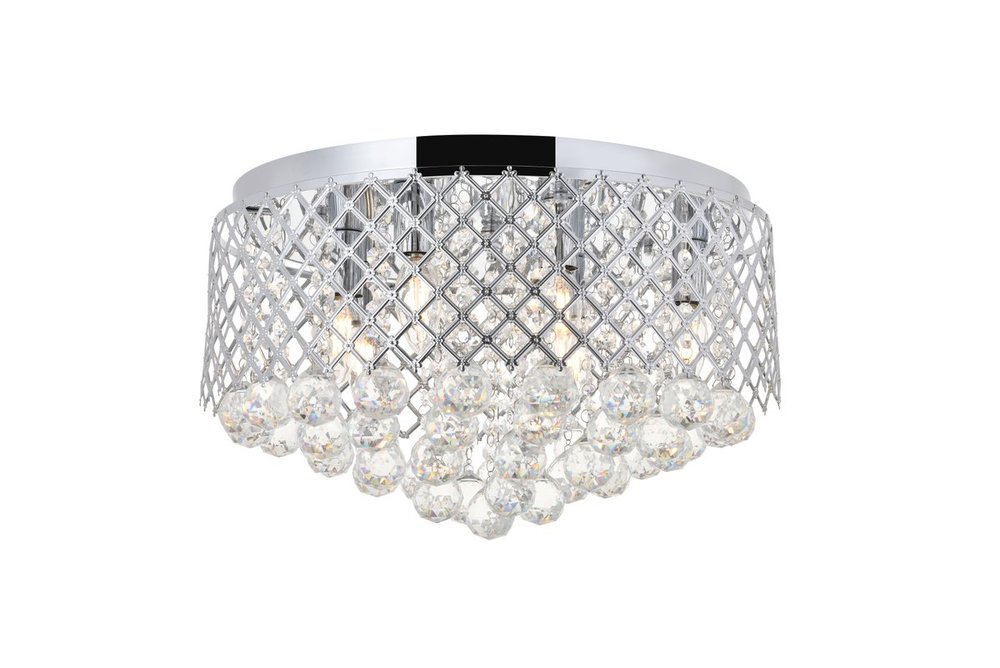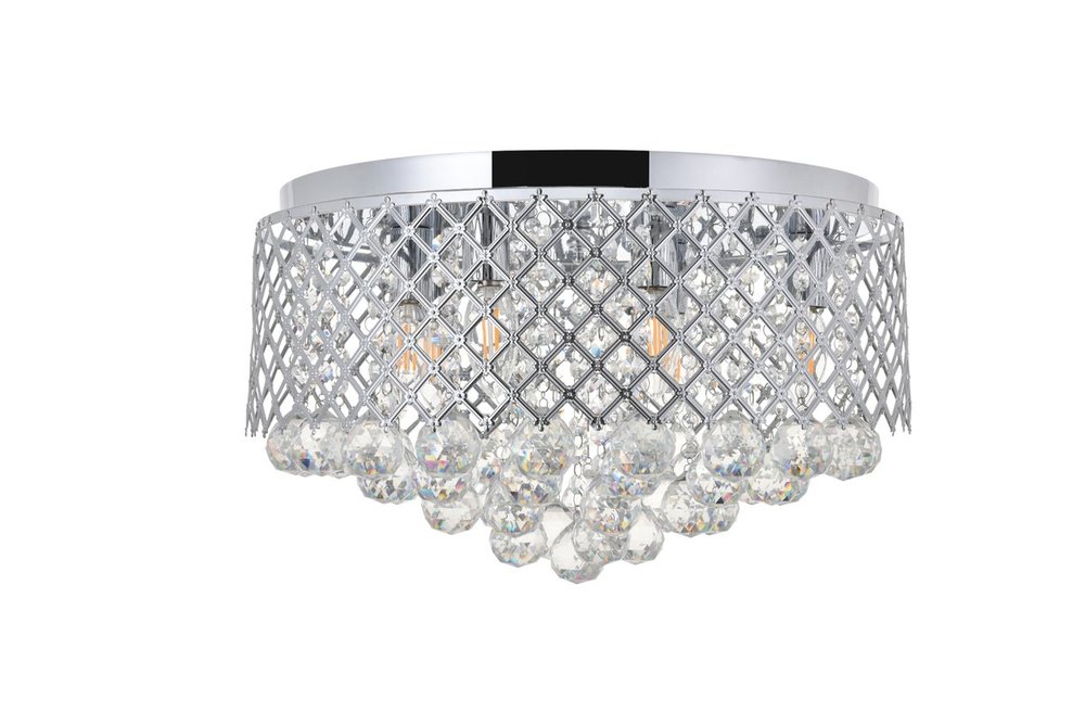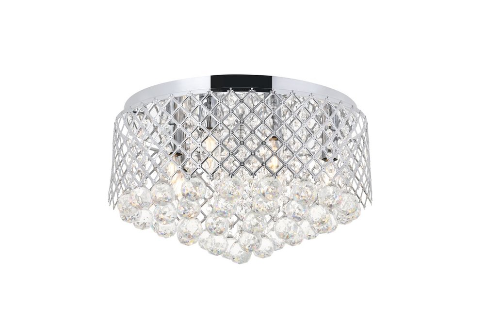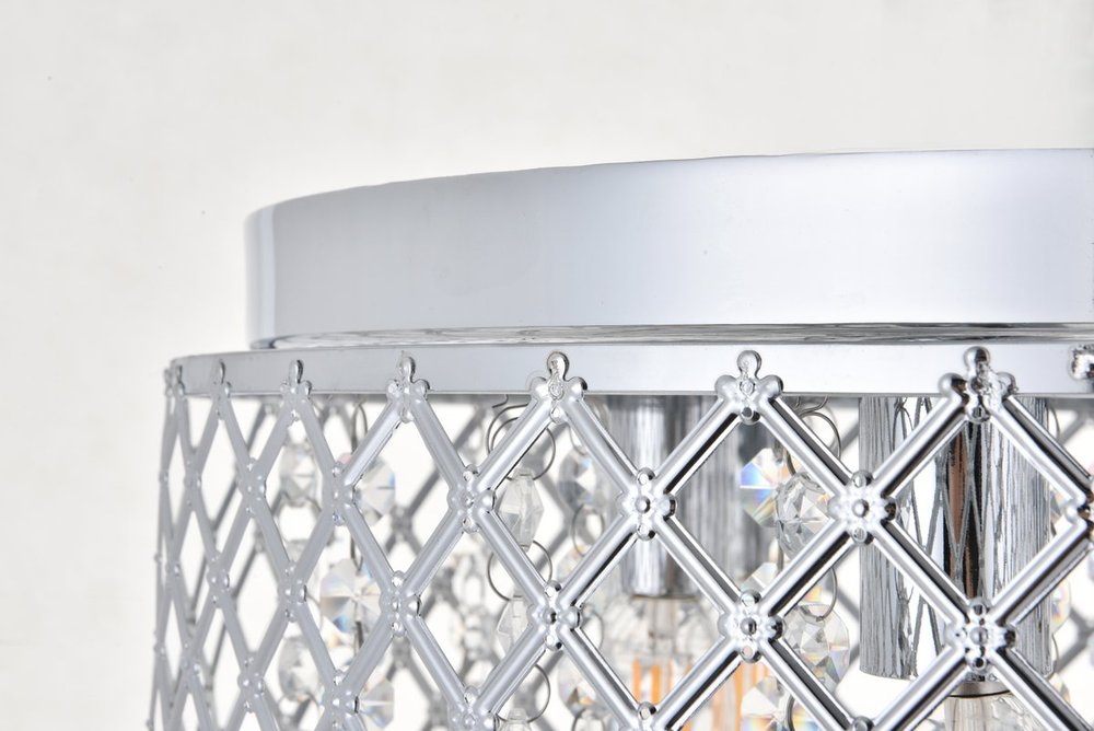 Enjoy the shimmering beauty of the Tully flush mount in a chrome finish. The elegant lattice metal curtain allows for the hanging crystals to play and dance around the illuminating light, with larger crystals at the base peeking out to say hello. Lights on or off, this flush mount will surely make quite a statement in your home!
