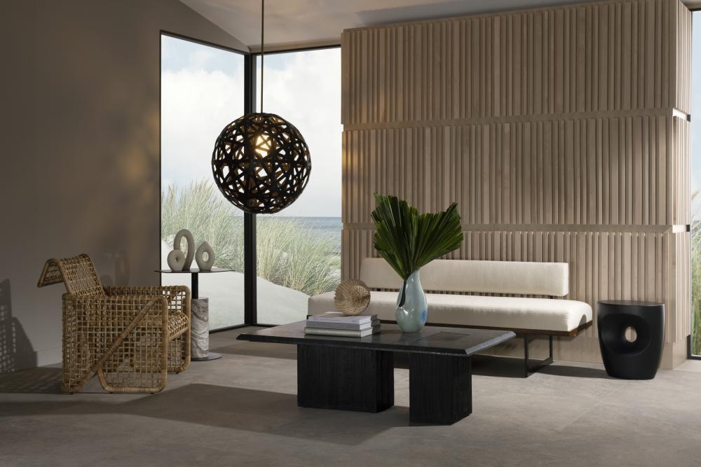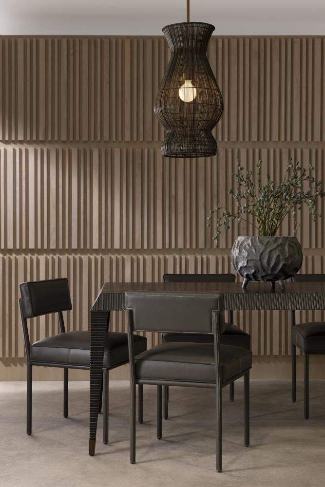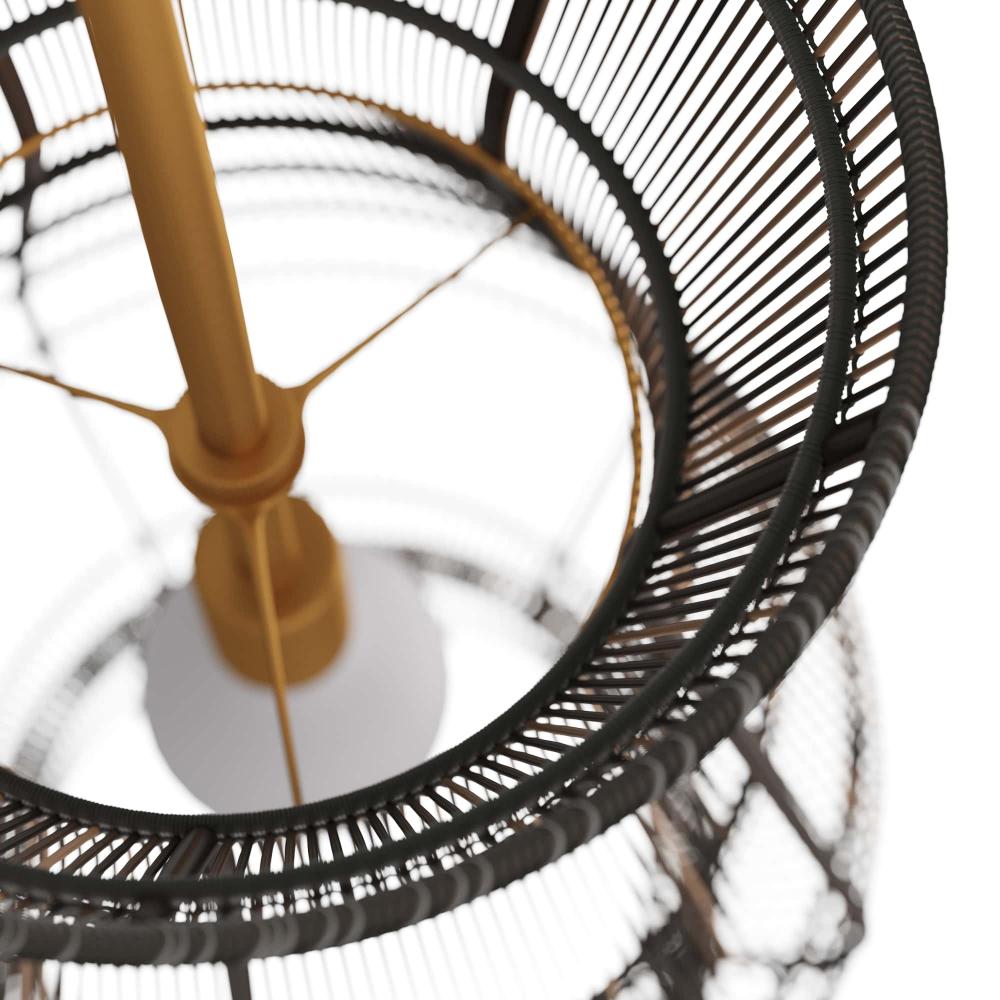 THE LANTERN-STYLE TURKS PENDENT EXUDES A MAKER SENSIBILITY, CRAFTED IN NATURAL BURI MIDRIB, AND STAINED A DARK BROWN. CREATED USING TRADITIONAL ARTISAN TECHNIQUES, THE BURI SLATS ALLOW LIGHT TO PASS THROUGH THE VERTICAL SLATS, LIGHTING UP THE STRIKING SILHOUETTE. ANTIQUE-BRASS STEEL PIPE SUSPENSION IMPART A CONTEMPORARY FLAIR. FINISH WILL VARY. DAMP-RATED, ALTHOUGH LIMITED COVERED OUTDOOR CONDITIONS MAY AFFECT FINISH.