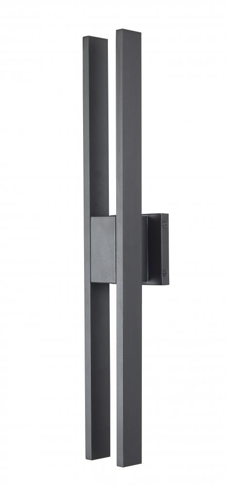The Slate wet location twin bar outdoor wall fixture is an elegant and bold addition to the exterior of your home. The light illuminates onto the wall behind it for a subtle accent light.