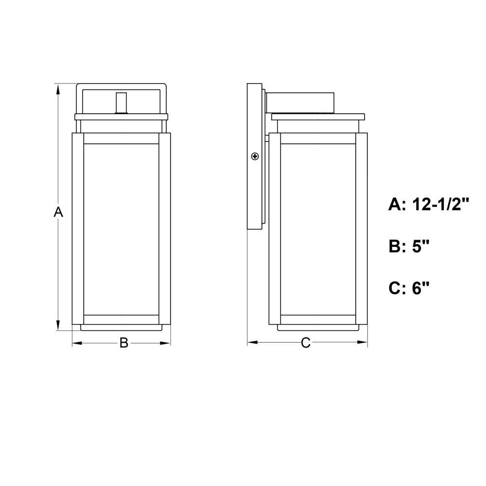 5-in W x 12.5-in H x 6-in D with 4.57-in W x 7.4-in H backplate