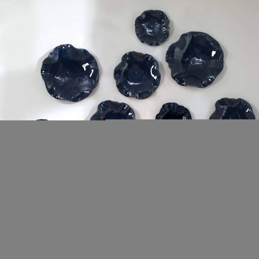 A Trio of Ceramic Flowers with Detailed Veining, Glazed in A Rich Cobalt Blue. May Be Hung on Wall or Used As Tabletop Accessory. Sizes: Sm-11x3x11, Med-15x3x15, Lg-18x4x18