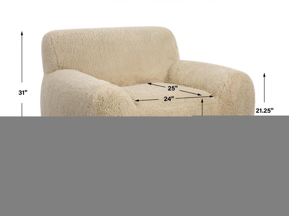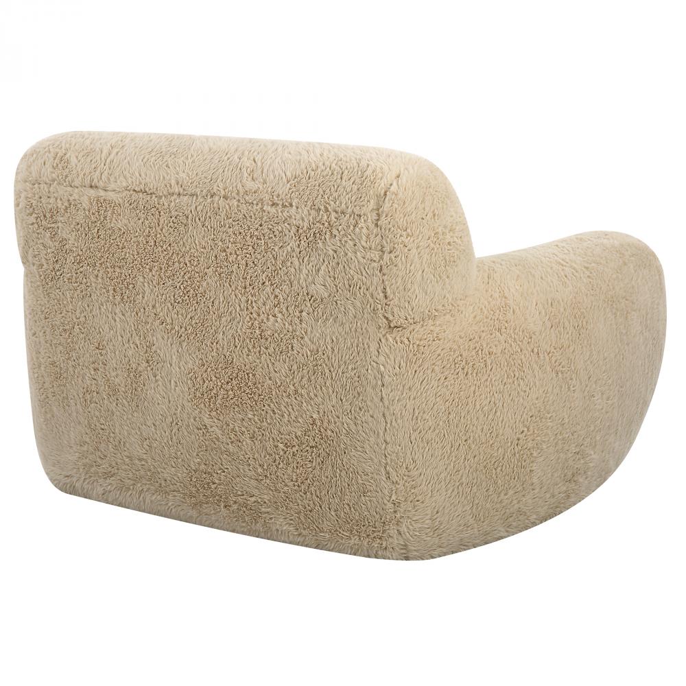 The Definition of A Cozy Place to Rest, The Caramel Toned Long-haired Faux Sheepskin Creates Rich Textural Depth Evoking Relaxed Luxury, with Bold Rounded Forms Adding Natural Comfort. Seat Height is 18".
