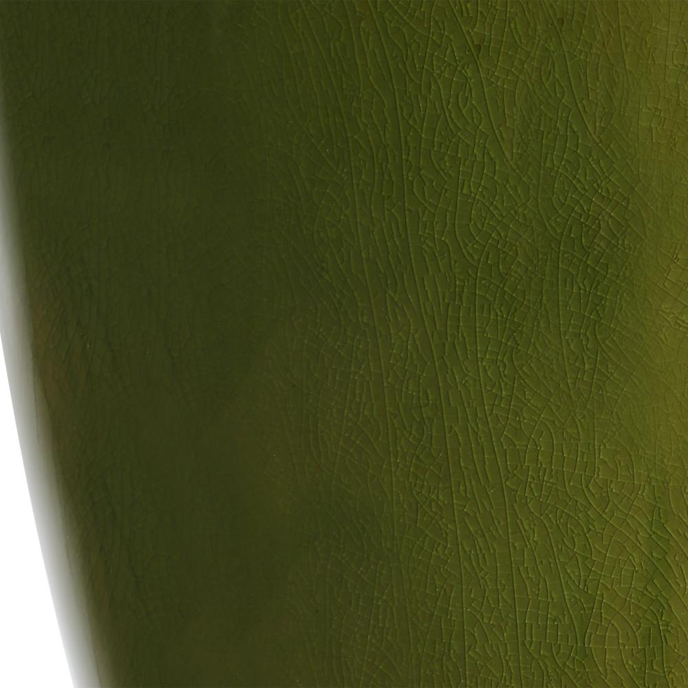 The Adela Table Lamp Features A Timeless Ceramic Urn Shaped Base Finished In A Crackled Moss Green Glaze Displayed On A Thick Crystal Foot And Paired With Brass Plated Accents. The Slightly Tapered Round Hardback Shade Is A Crisp White Linen Fabric.