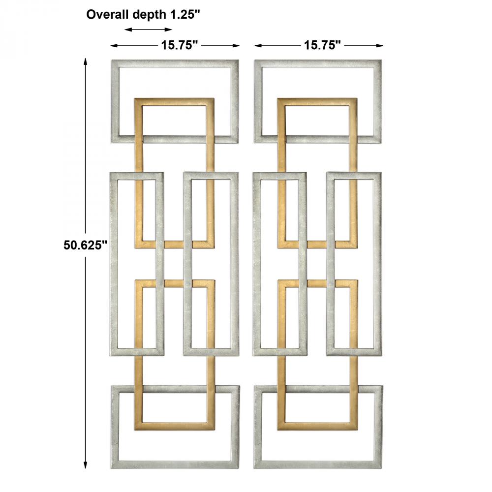 Overlapping, Geometric Rectangles Creating A Contemporary Look in A Two-toned Finish Combination of Lightly Antiqued Gold and Silver Leaf. May Be Hung Horizontal or Vertical.